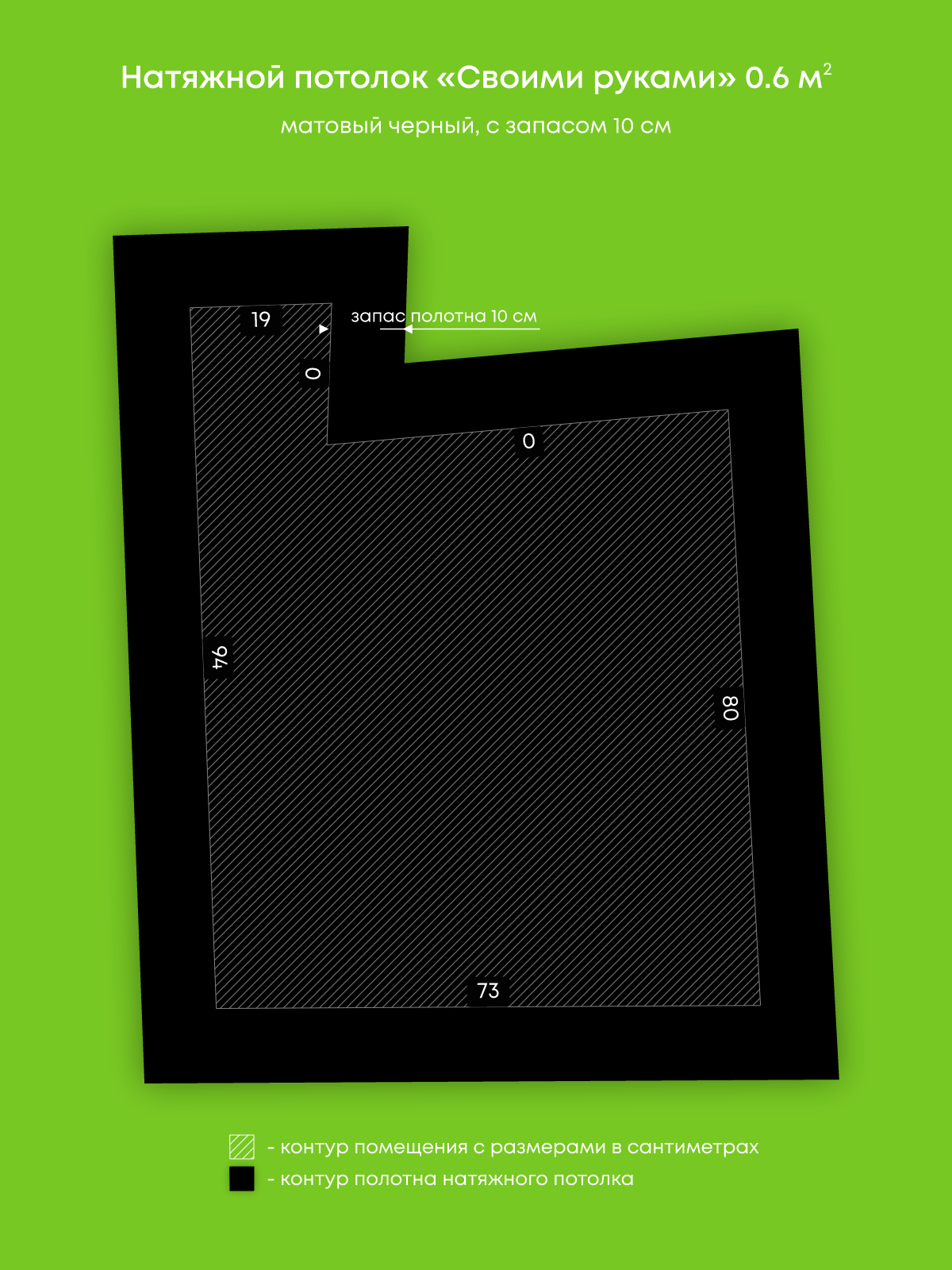 Натяжной потолок черный матовый, изготовленный по индивидуальным размерам покупателя, для ванной площадью 0.6 м2