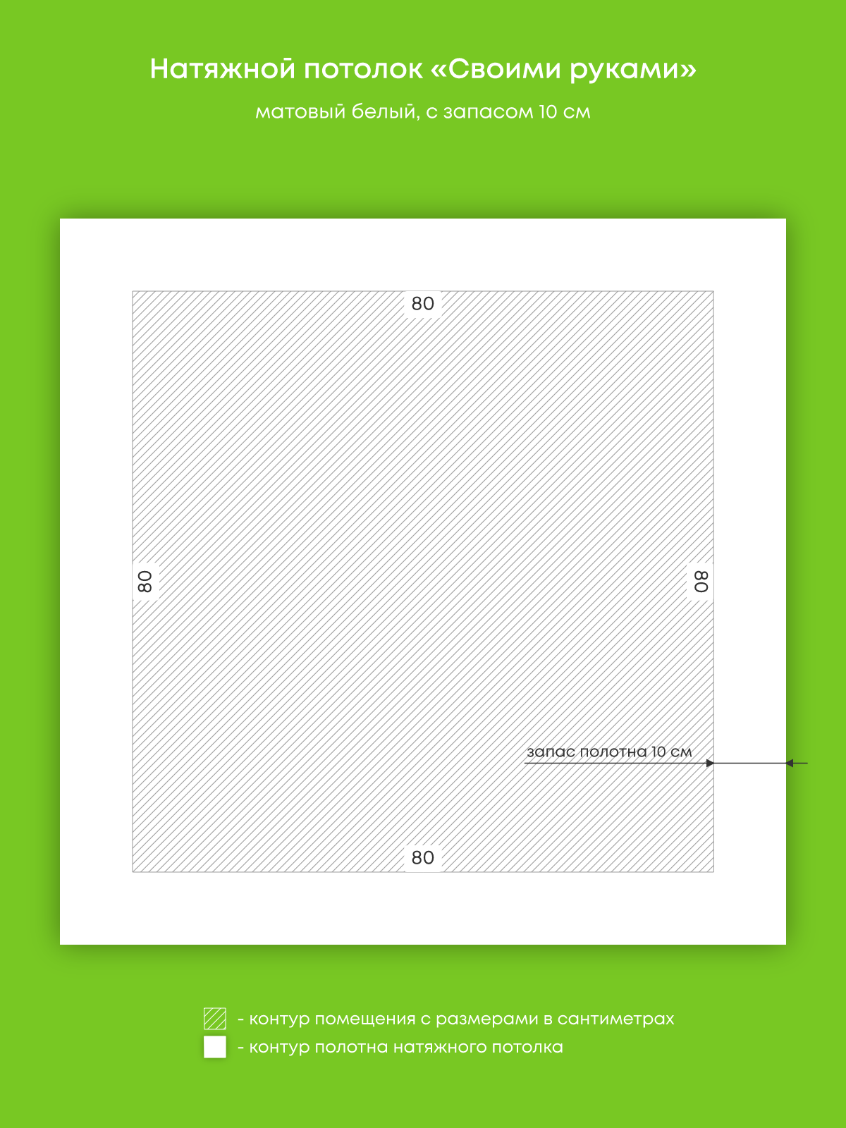 Натяжной потолок белый матовый, изготовленный по индивидуальным размерам покупателя, для комнаты площадью 0.6 м2