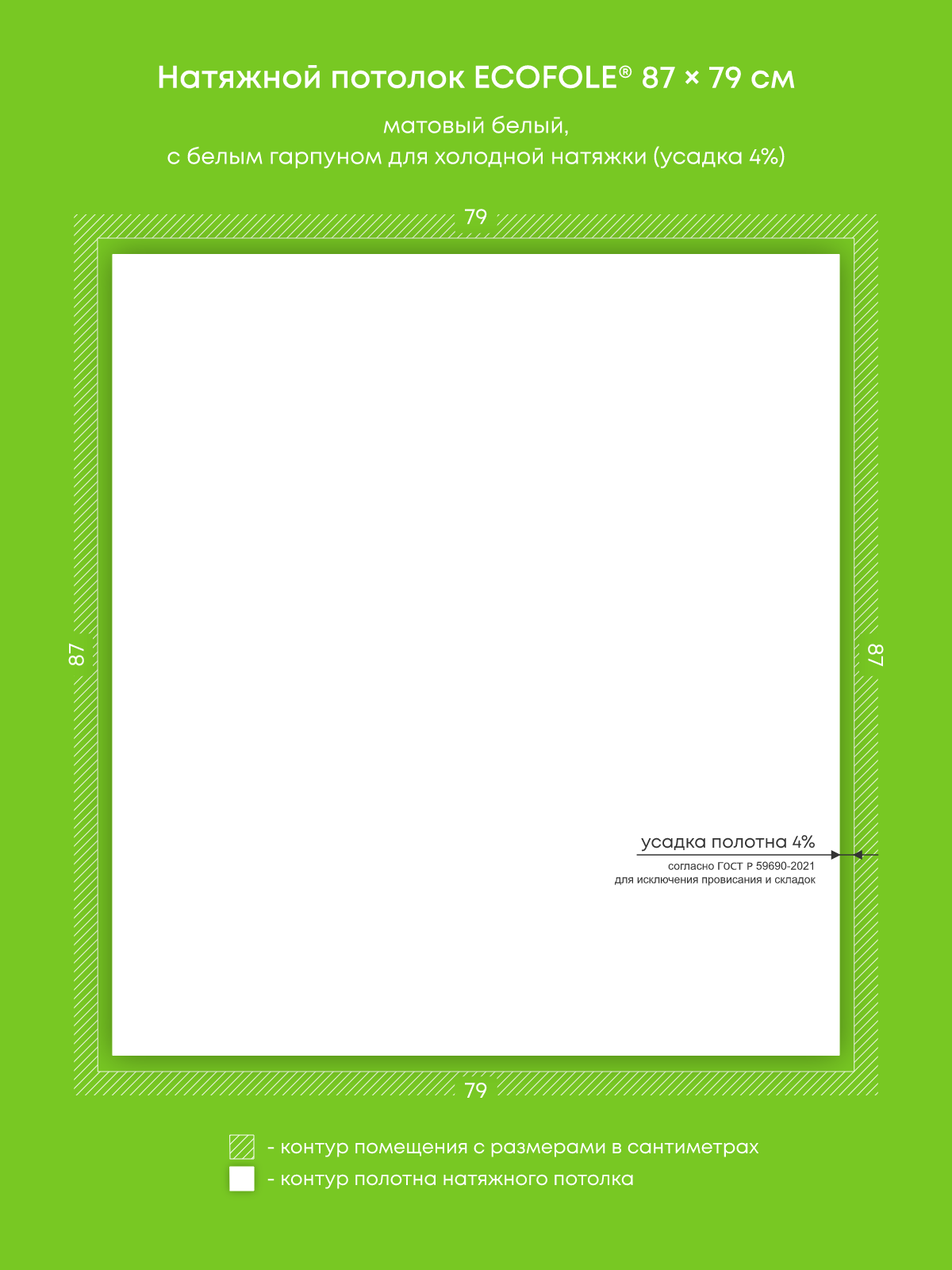 Натяжной потолок белый матовый, изготовленный по индивидуальным размерам покупателя, для помещения площадью 0.7 м2