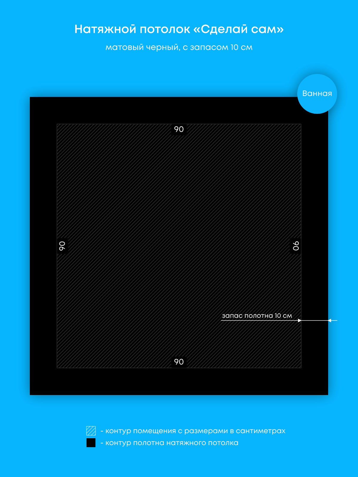 Натяжной потолок черный матовый, изготовленный по индивидуальным размерам покупателя, для ванной площадью 0.8 м2