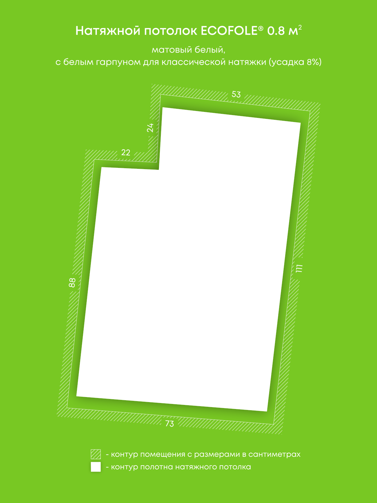 Натяжной потолок белый матовый, изготовленный по индивидуальным размерам покупателя, для помещения площадью 0.8 м2