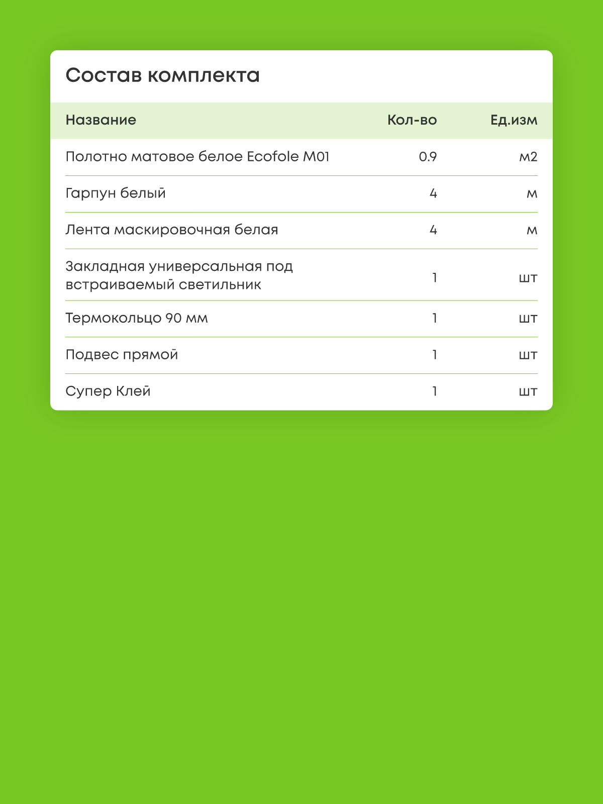 Натяжной потолок белый матовый, изготовленный по индивидуальным размерам покупателя, для помещения площадью 0.9 м2