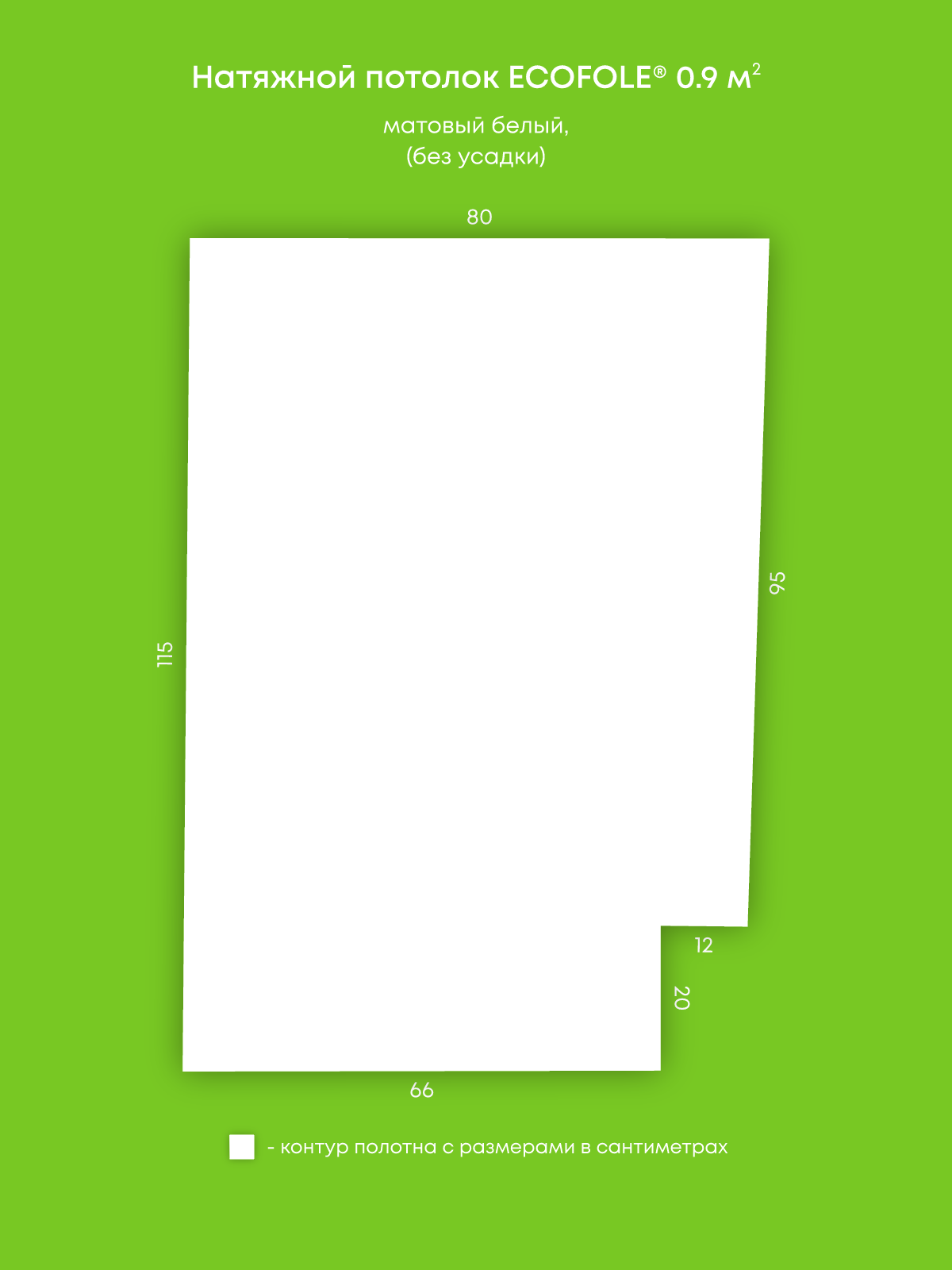 Натяжной потолок белый матовый, изготовленный по индивидуальным размерам покупателя, для помещения площадью 0.9 м2