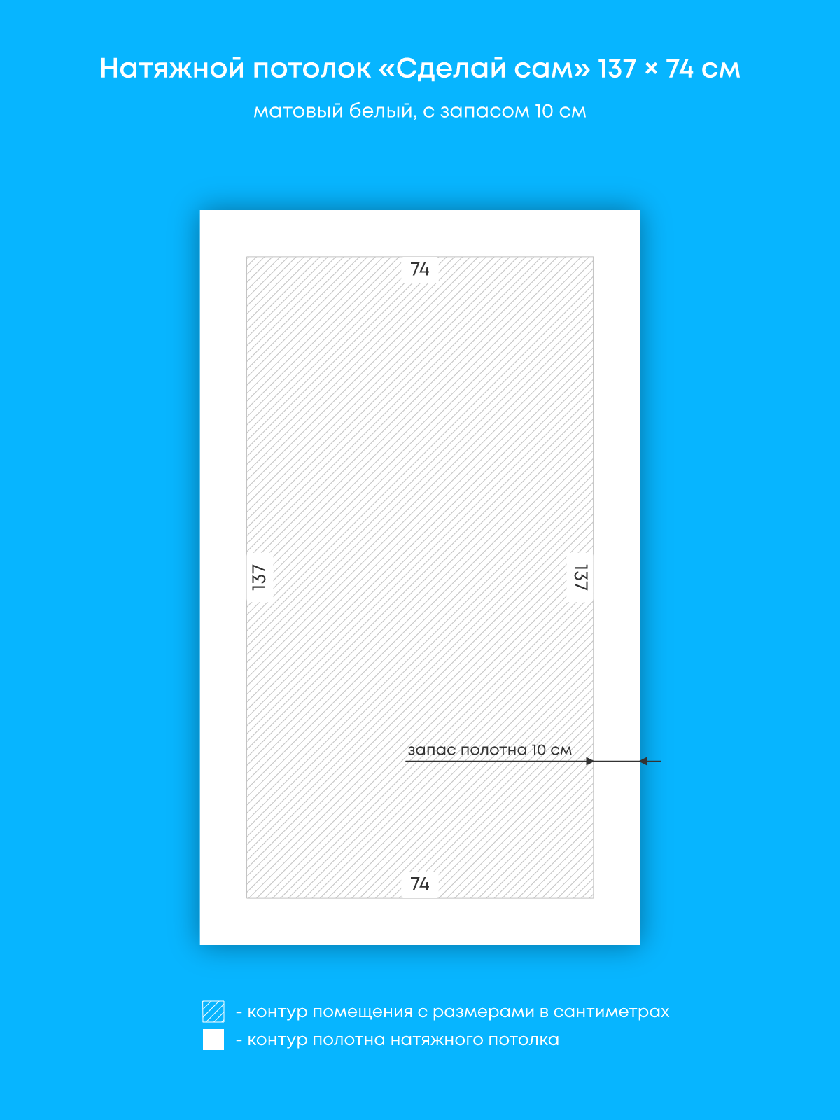 Натяжной потолок белый матовый, сделай сам, изготовленный по индивидуальным размерам покупателя, для помещения площадью 1 м2