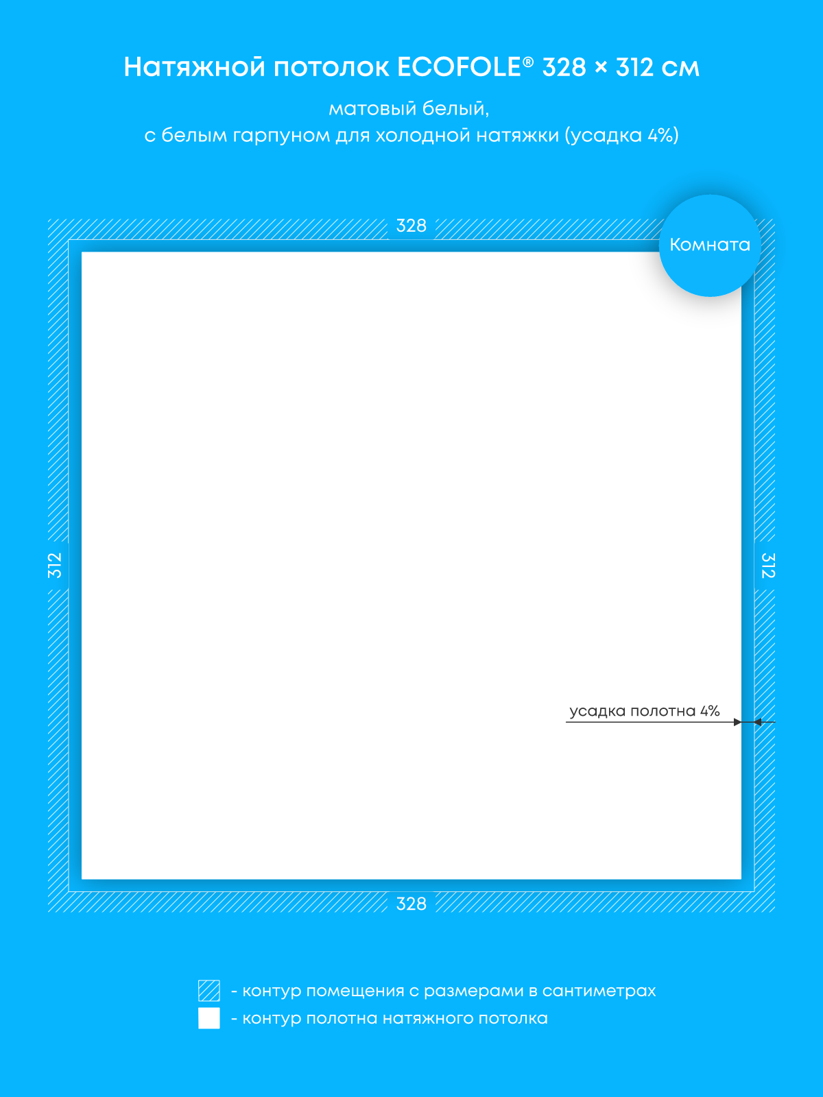 Натяжной потолок белый матовый, холодной натяжки, изготовленный по индивидуальным размерам покупателя, для помещения площадью 10.2 м2