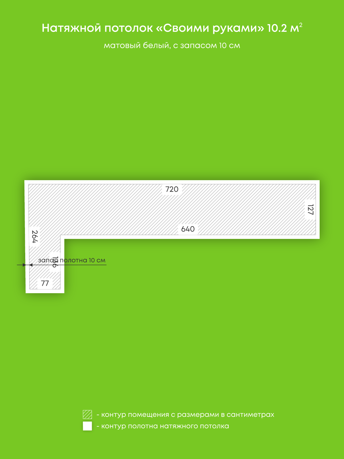 Натяжной потолок белый матовый, изготовленный по индивидуальным размерам покупателя, для помещения площадью 10.2 м2