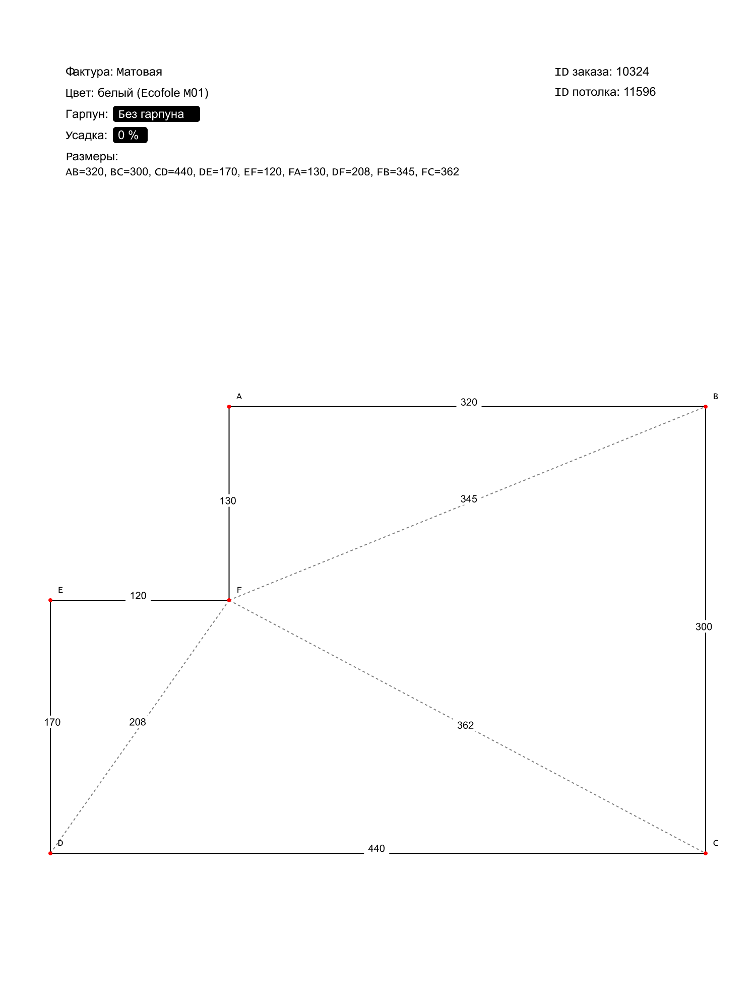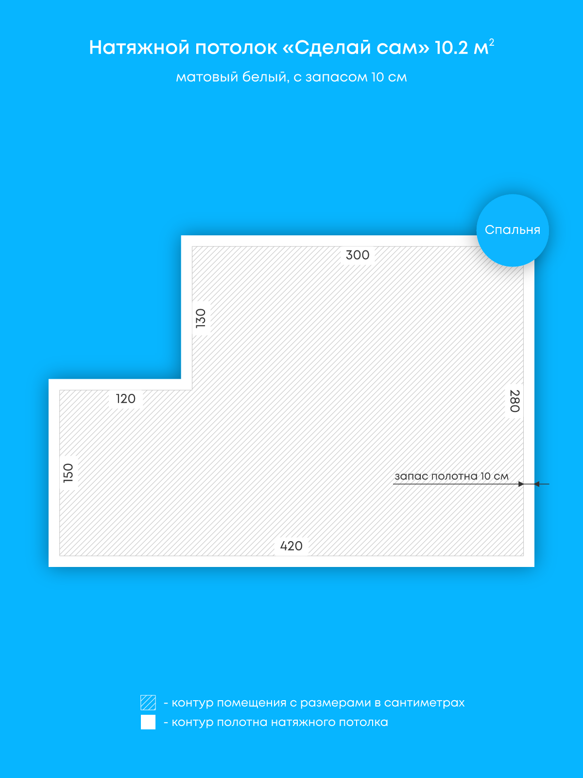 Натяжной потолок белый матовый, сделай сам, изготовленный по индивидуальным размерам покупателя, для помещения площадью 10.2 м2
