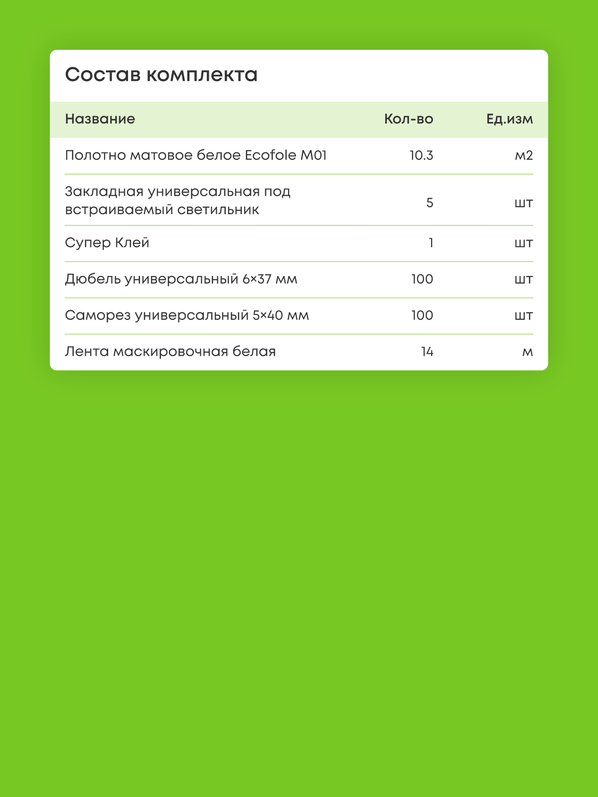 Натяжной потолок белый матовый, изготовленный по индивидуальным размерам покупателя, для помещения площадью 10.3 м2