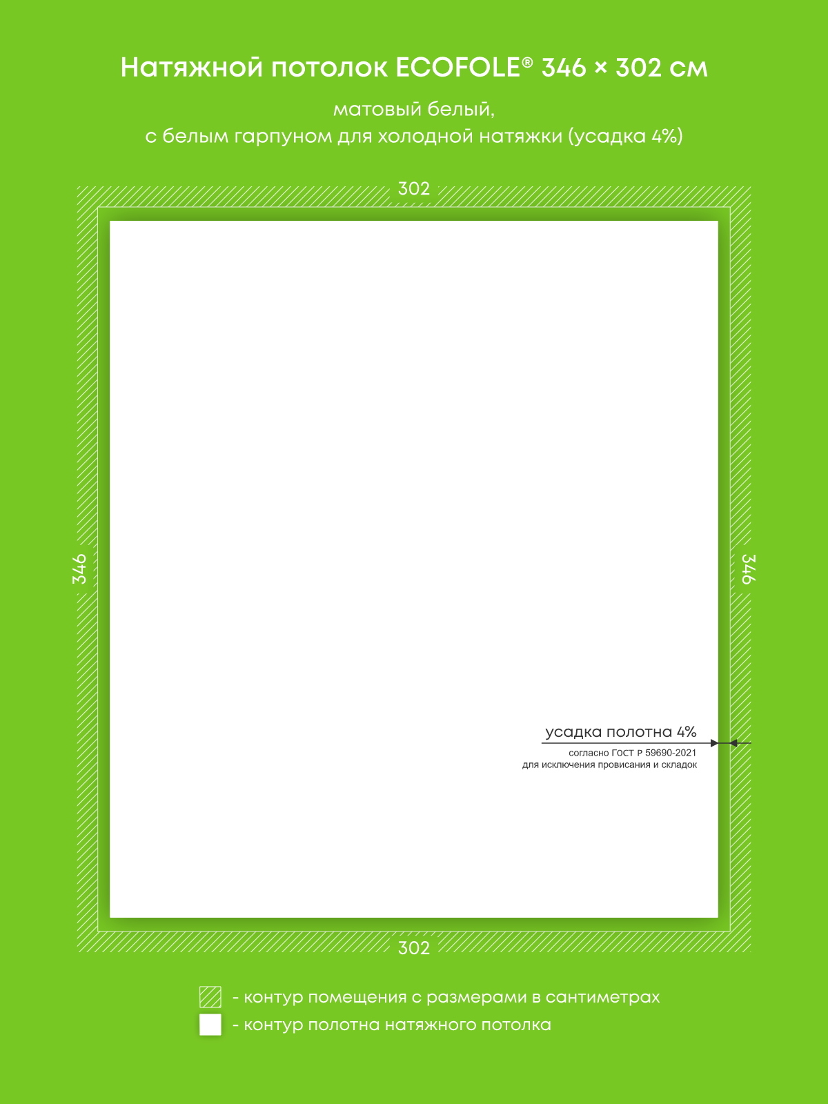 Натяжной потолок белый матовый, изготовленный по индивидуальным размерам покупателя, для комнаты площадью 10.4 м2