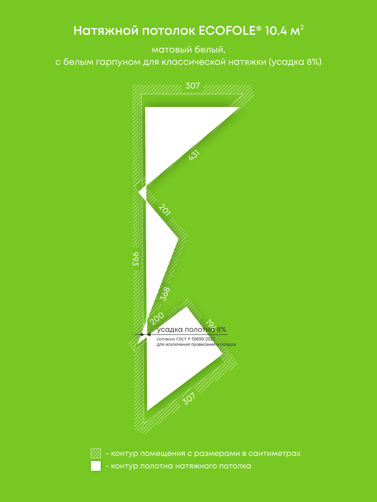 Матовый натяжной потолок 10.4 м2