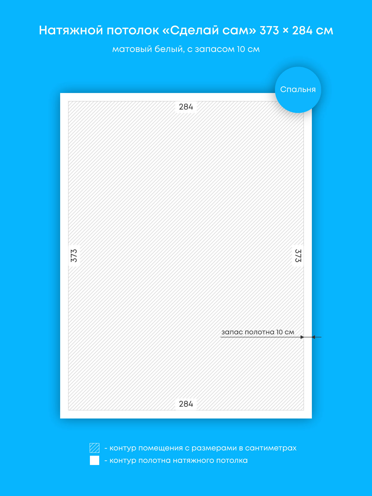 Натяжной потолок белый матовый, изготовленный по индивидуальным размерам покупателя, для спальни площадью 10.6 м2