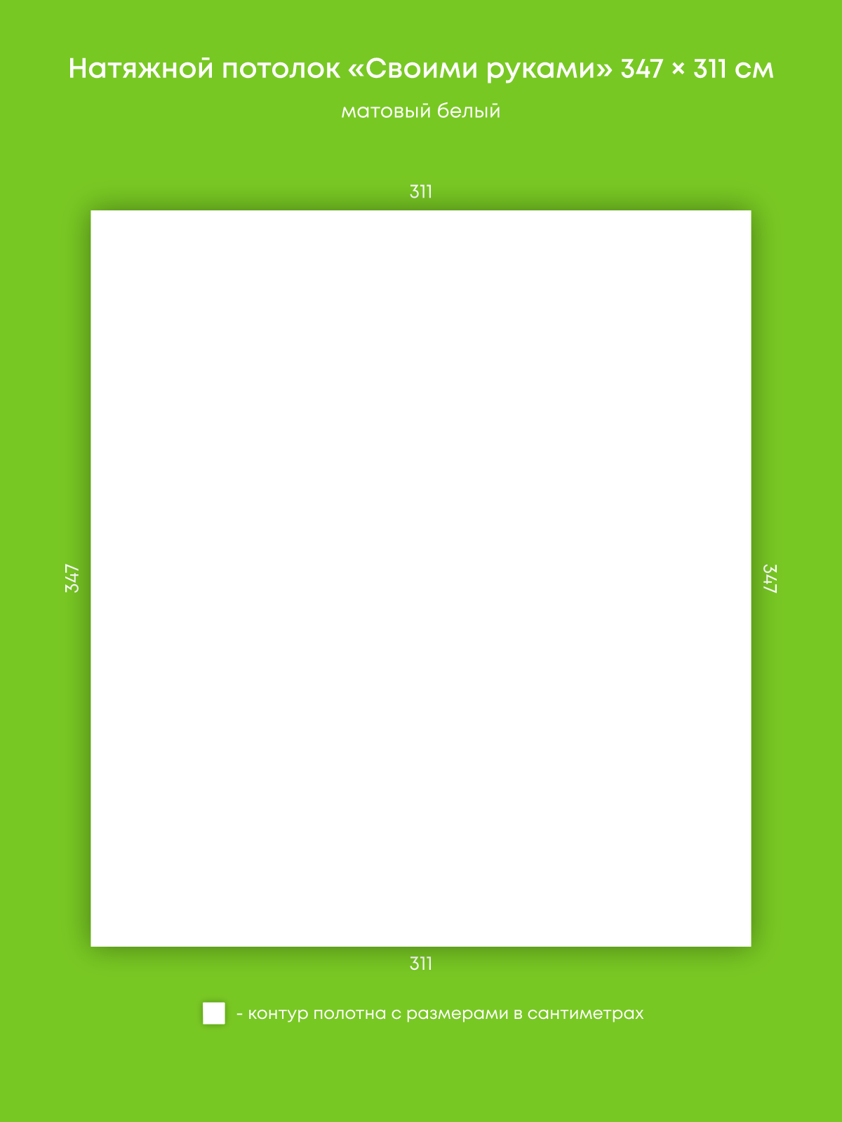 Натяжной потолок белый матовый, изготовленный по индивидуальным размерам покупателя, для помещения площадью 10.8 м2