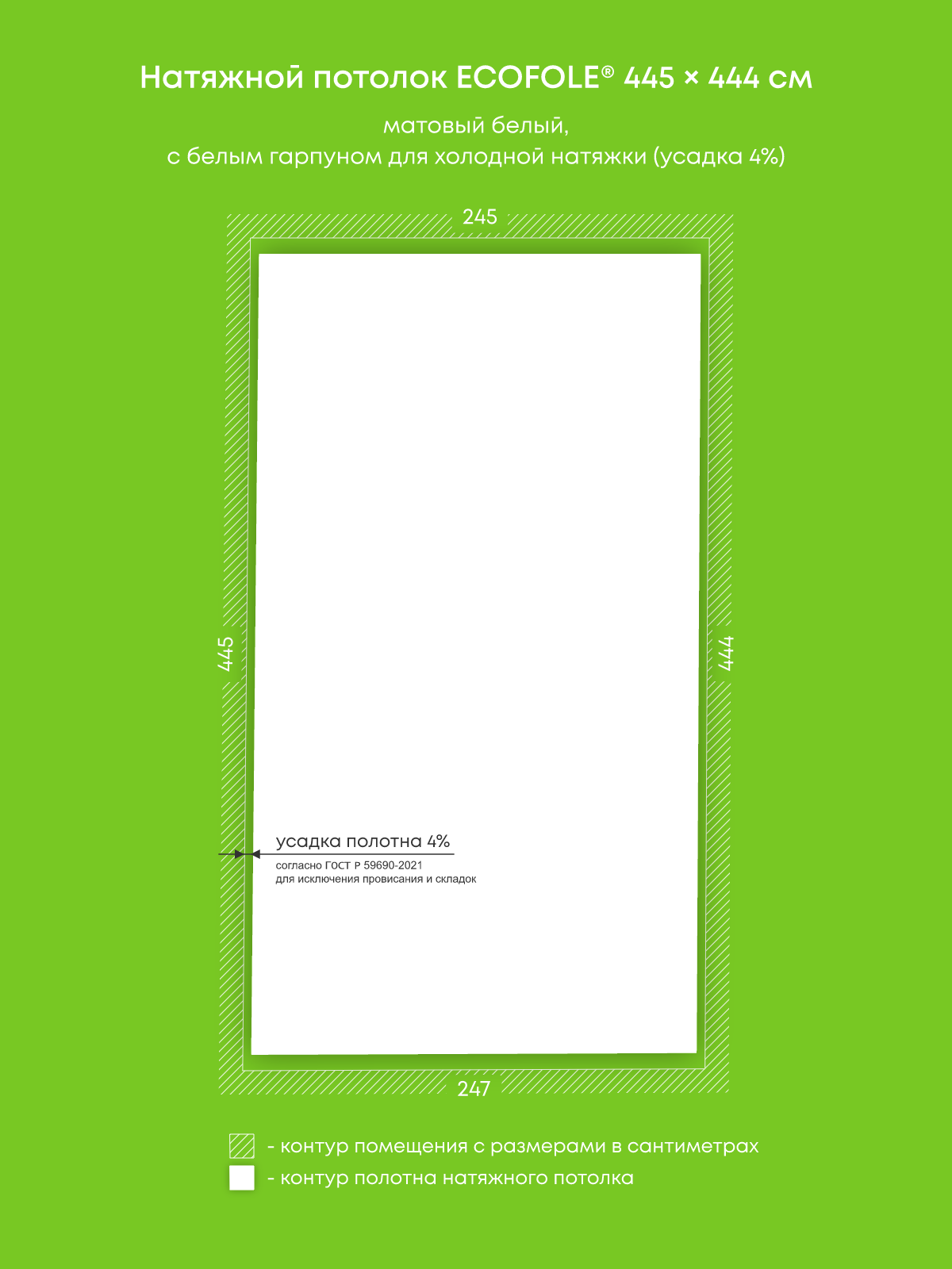 Матовый натяжной потолок 10.9 м2