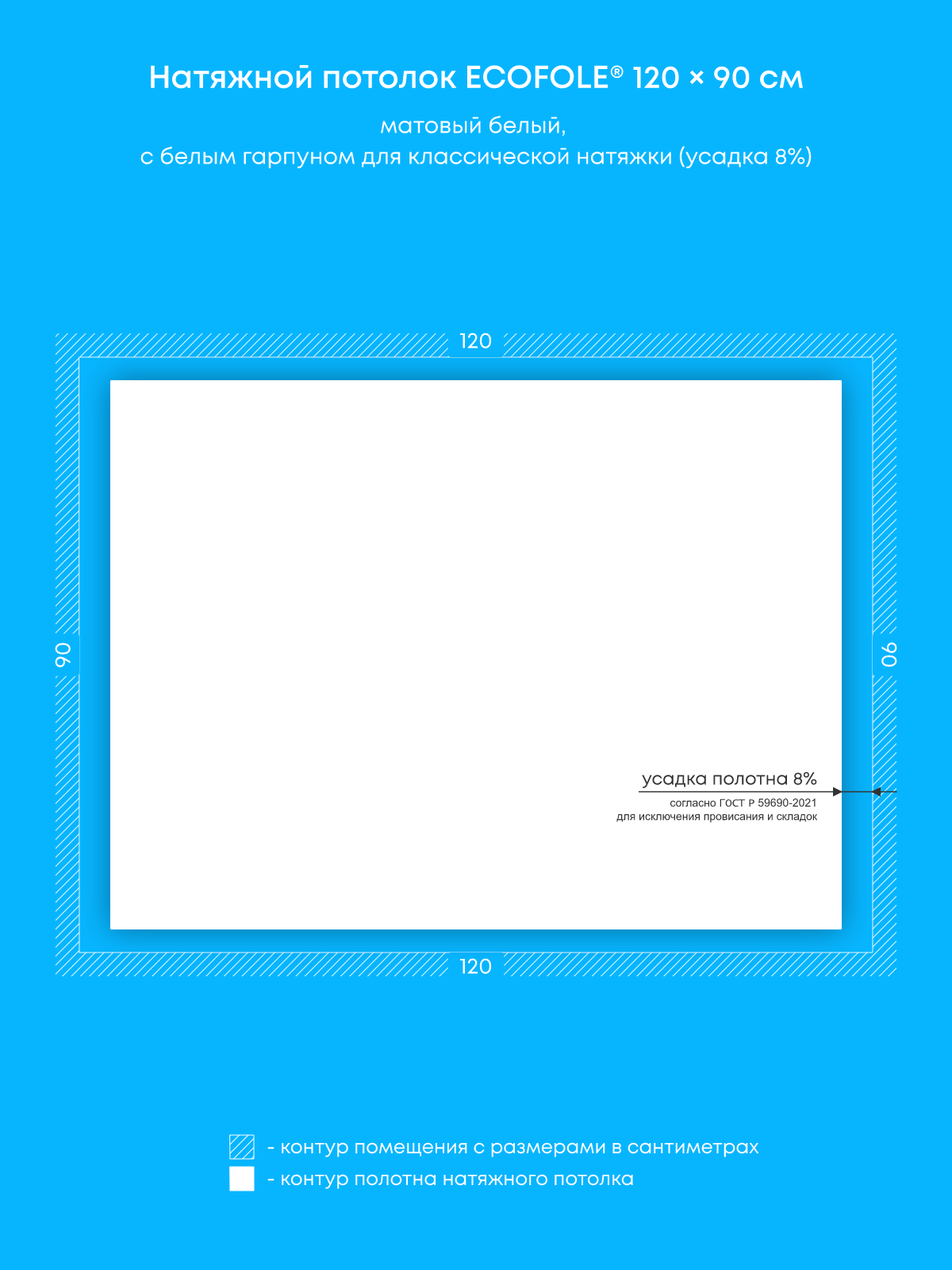 Натяжной потолок белый матовый, классической натяжки, изготовленный по индивидуальным размерам покупателя, для помещения площадью 1.1 м2