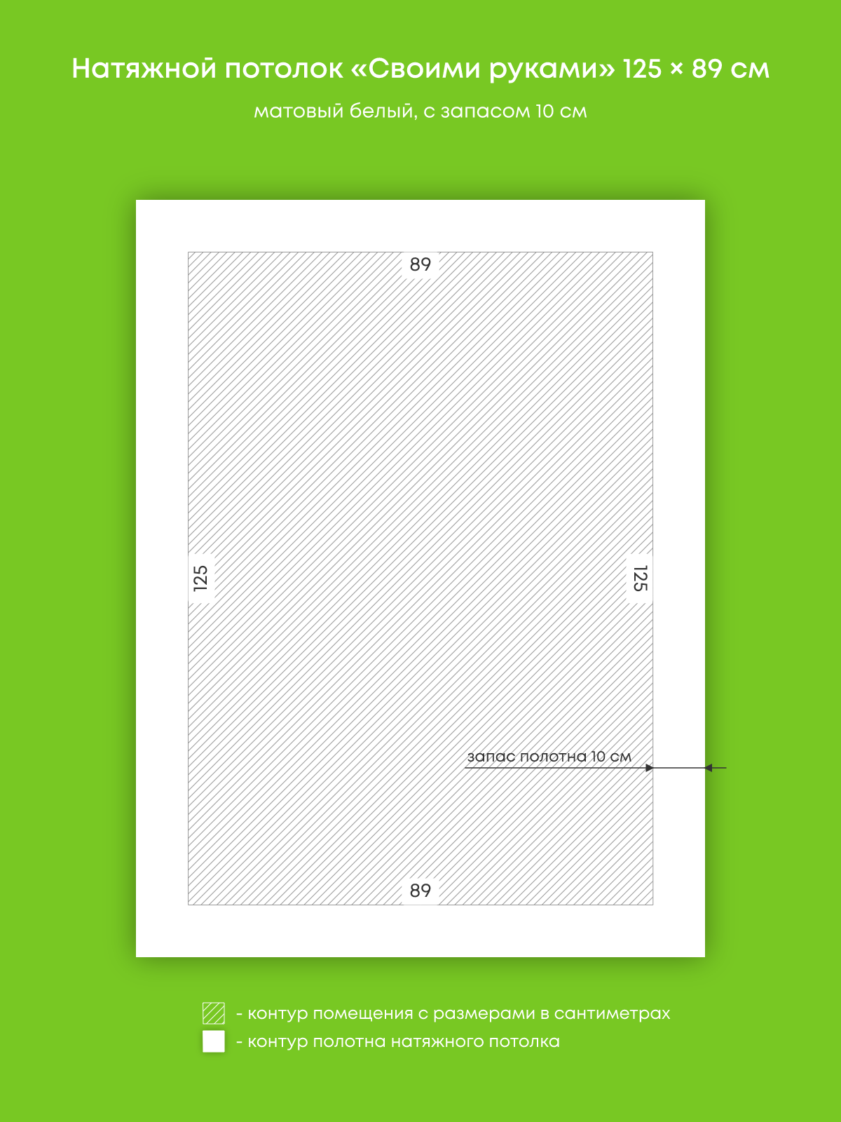 Натяжной потолок белый матовый, изготовленный по индивидуальным размерам покупателя, для помещения площадью 1.1 м2