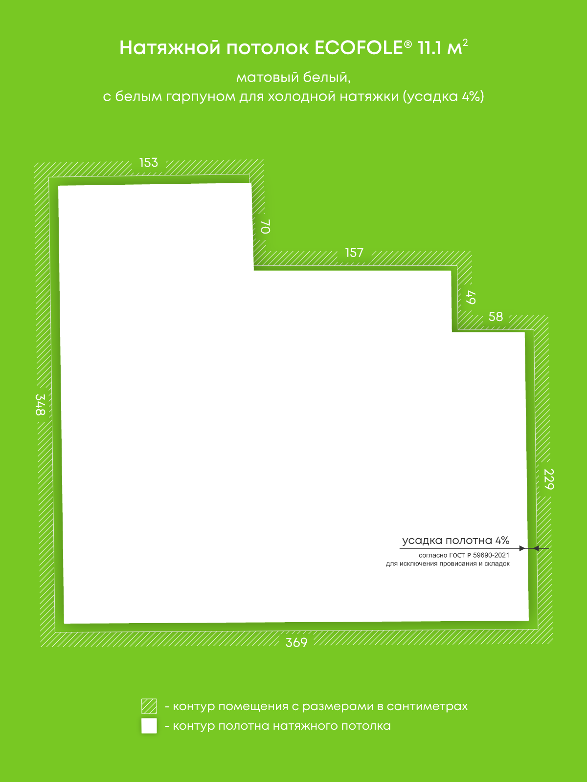 Матовый натяжной потолок 11.1 м2