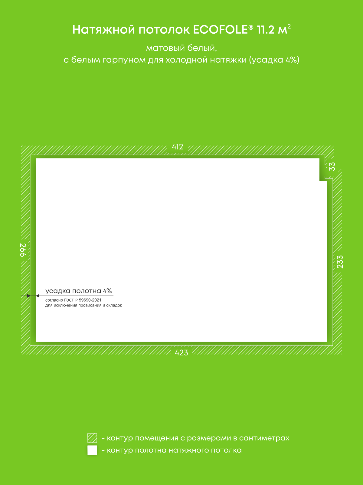 Матовый натяжной потолок 11.2 м2