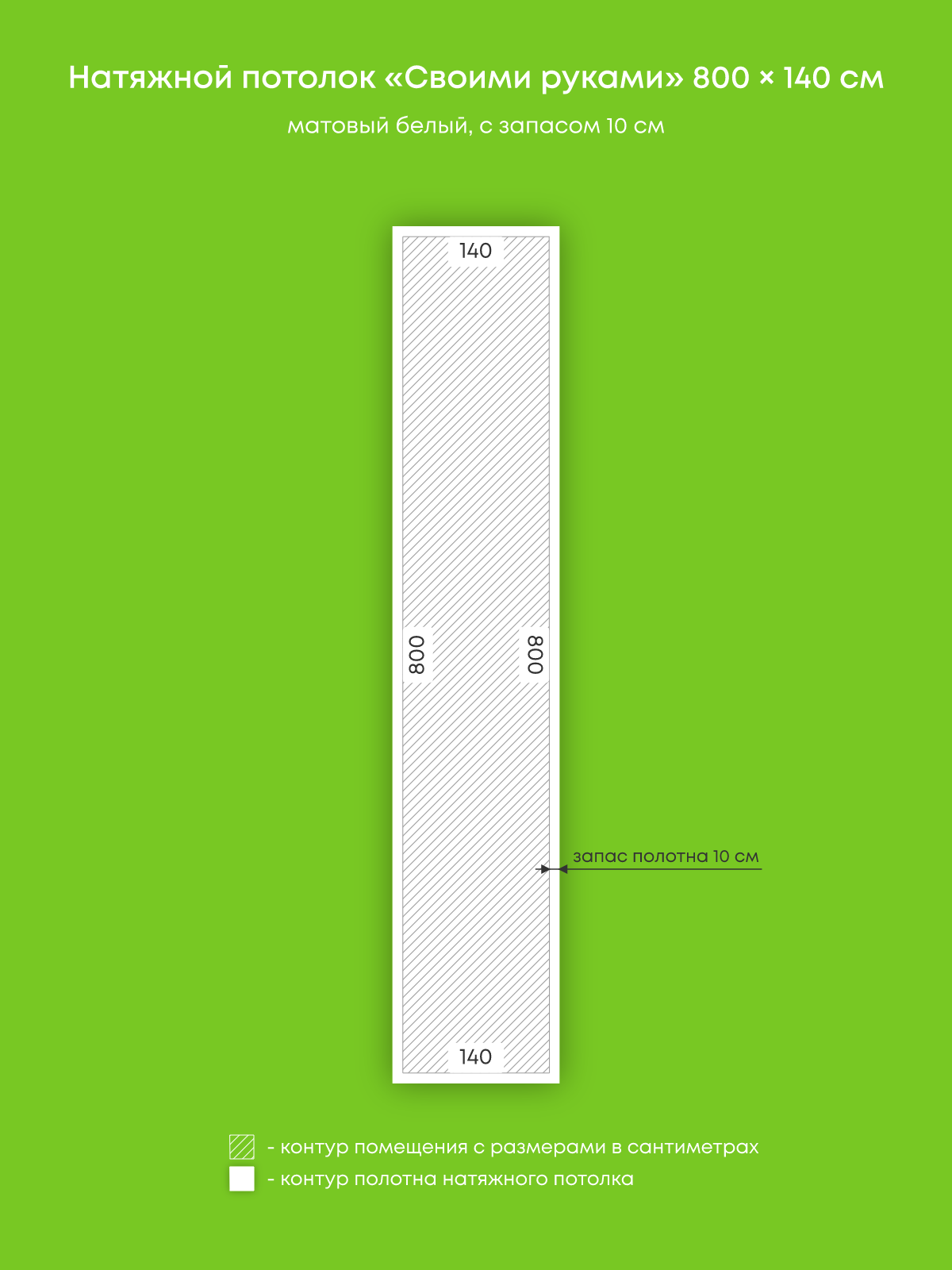 Натяжной потолок белый матовый, изготовленный по индивидуальным размерам покупателя, для помещения площадью 11.2 м2