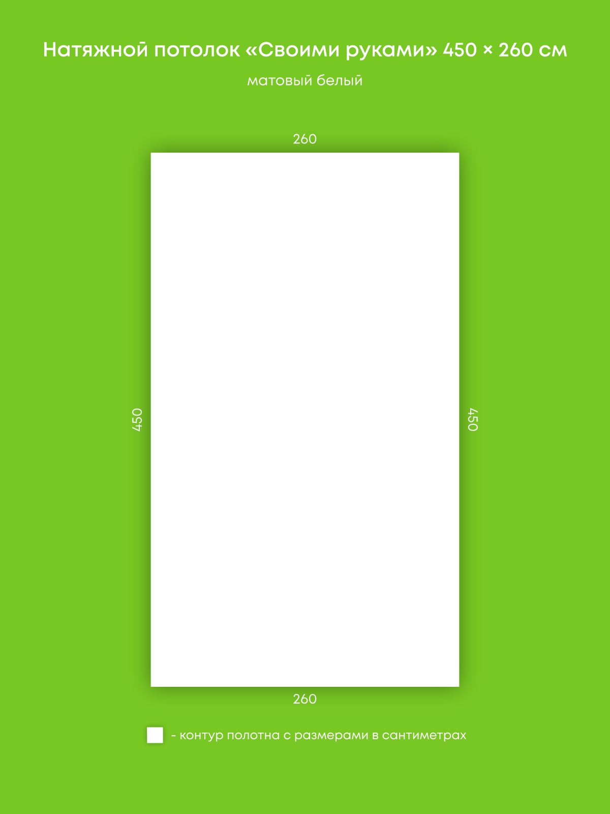 Натяжной потолок белый матовый, изготовленный по индивидуальным размерам покупателя, для помещения площадью 11.7 м2