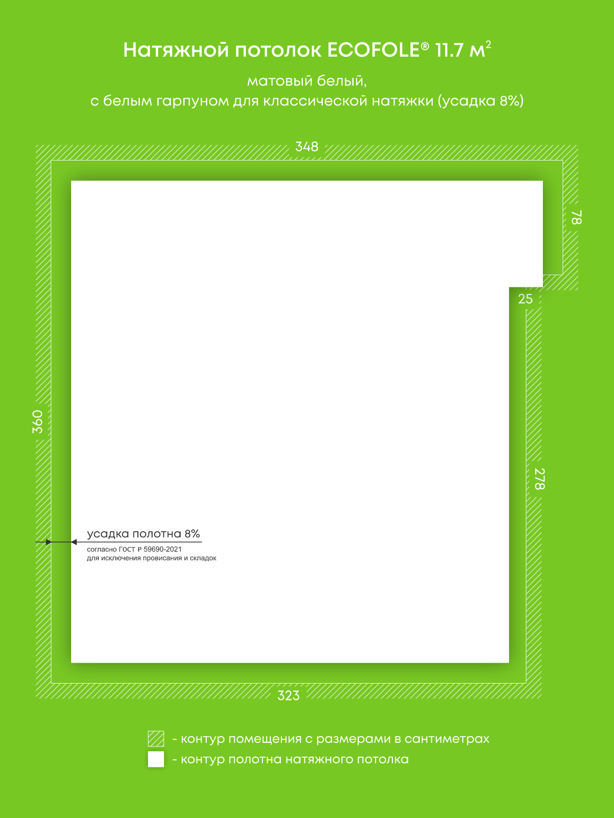 Матовый натяжной потолок 11.7 м2