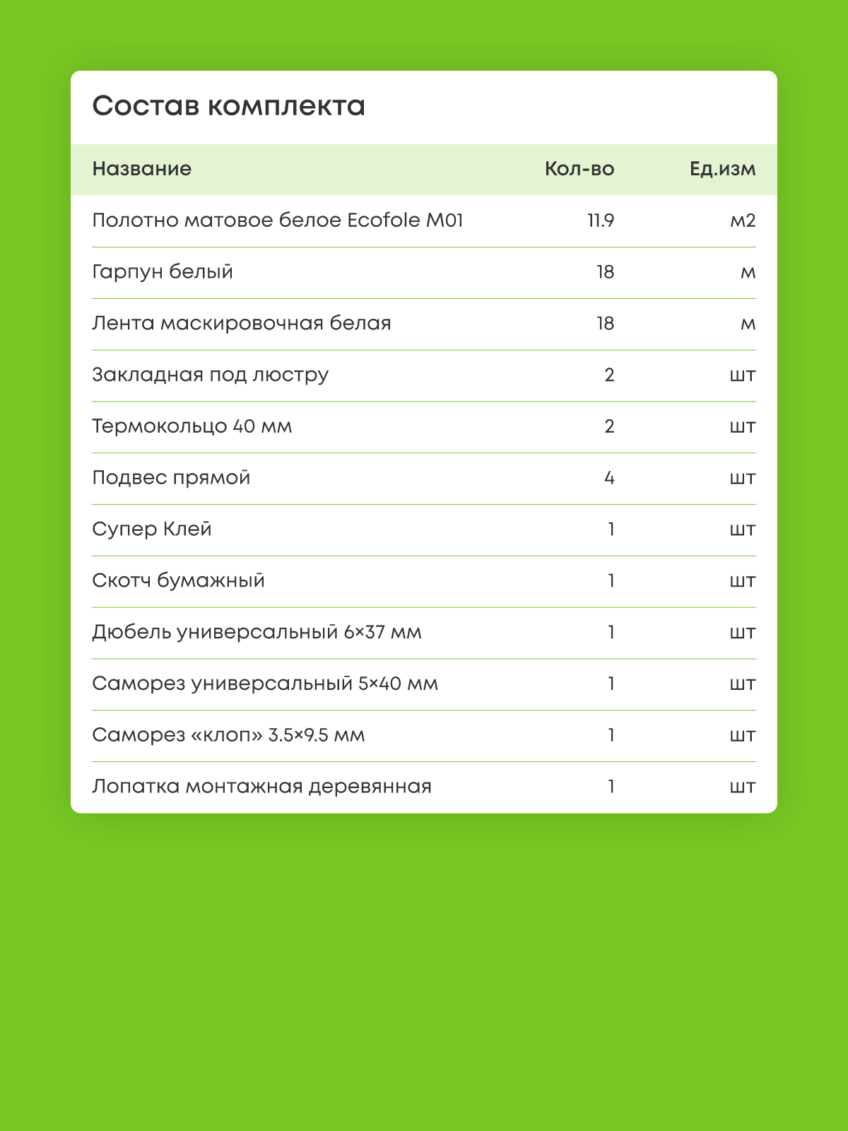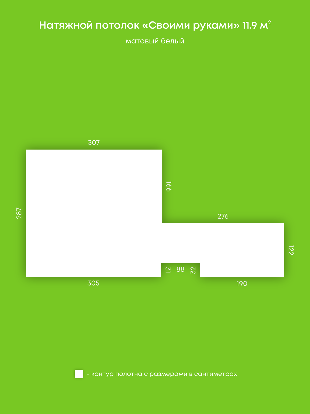 Натяжной потолок белый матовый, изготовленный по индивидуальным размерам покупателя, для помещения площадью 11.9 м2