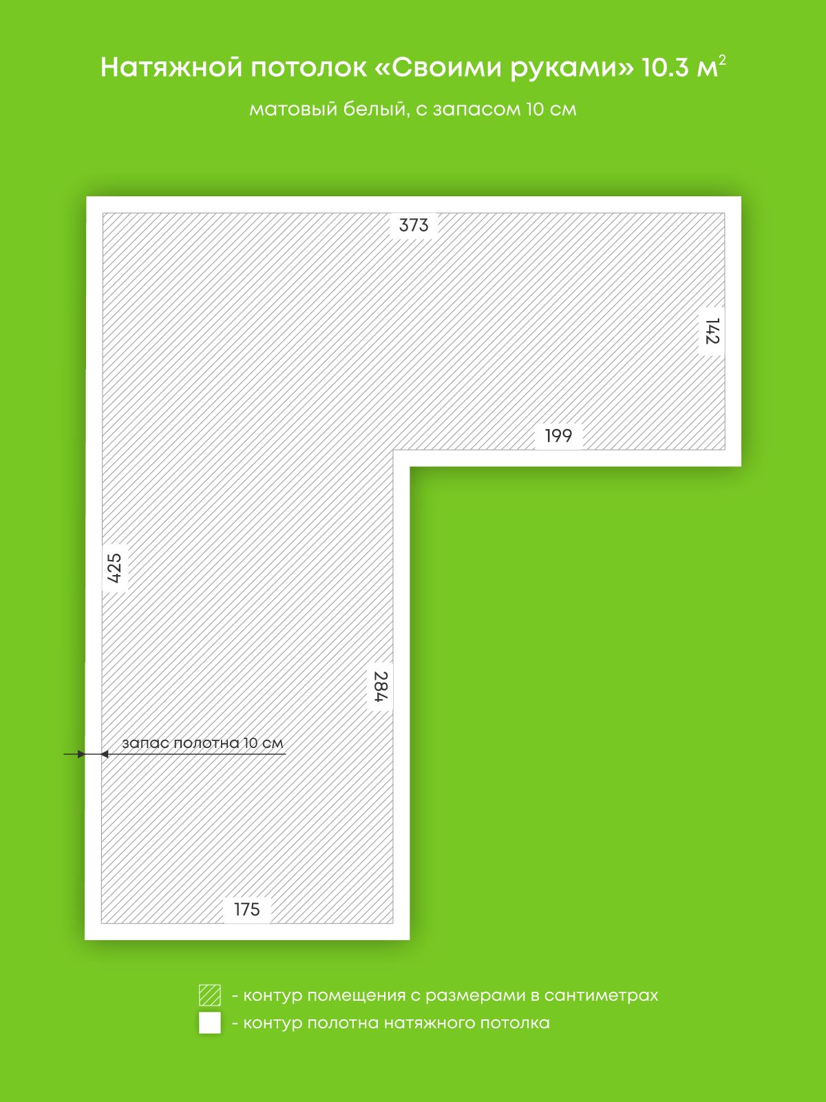 Натяжной потолок белый матовый, изготовленный по индивидуальным размерам покупателя, для помещения площадью 11.9 м2
