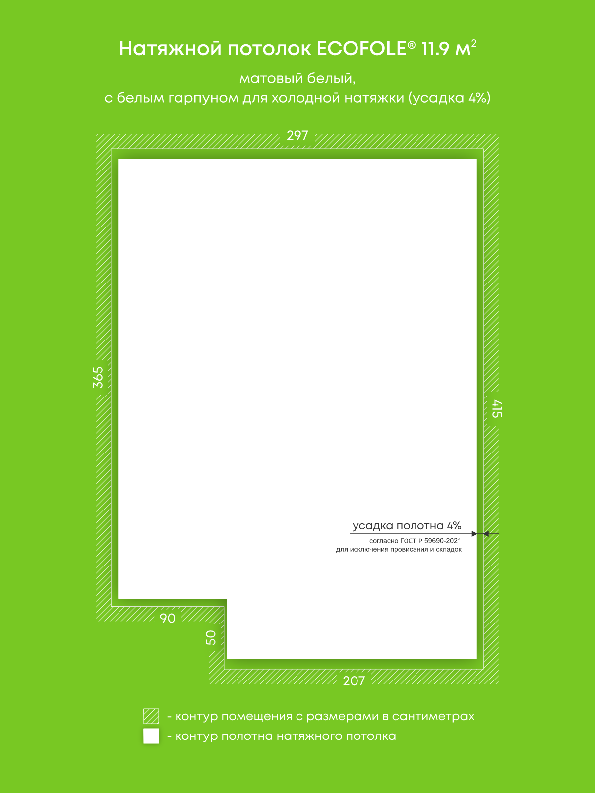 Матовый натяжной потолок 11.9 м2
