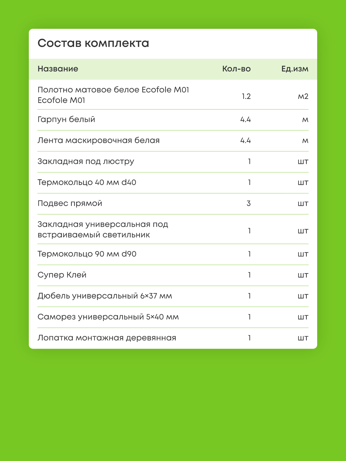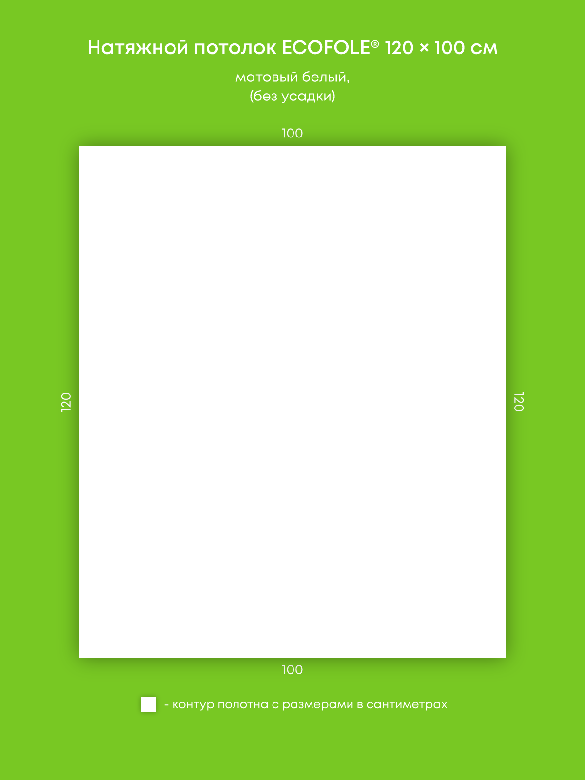 Натяжной потолок белый матовый, изготовленный по индивидуальным размерам покупателя, для помещения площадью 1.2 м2