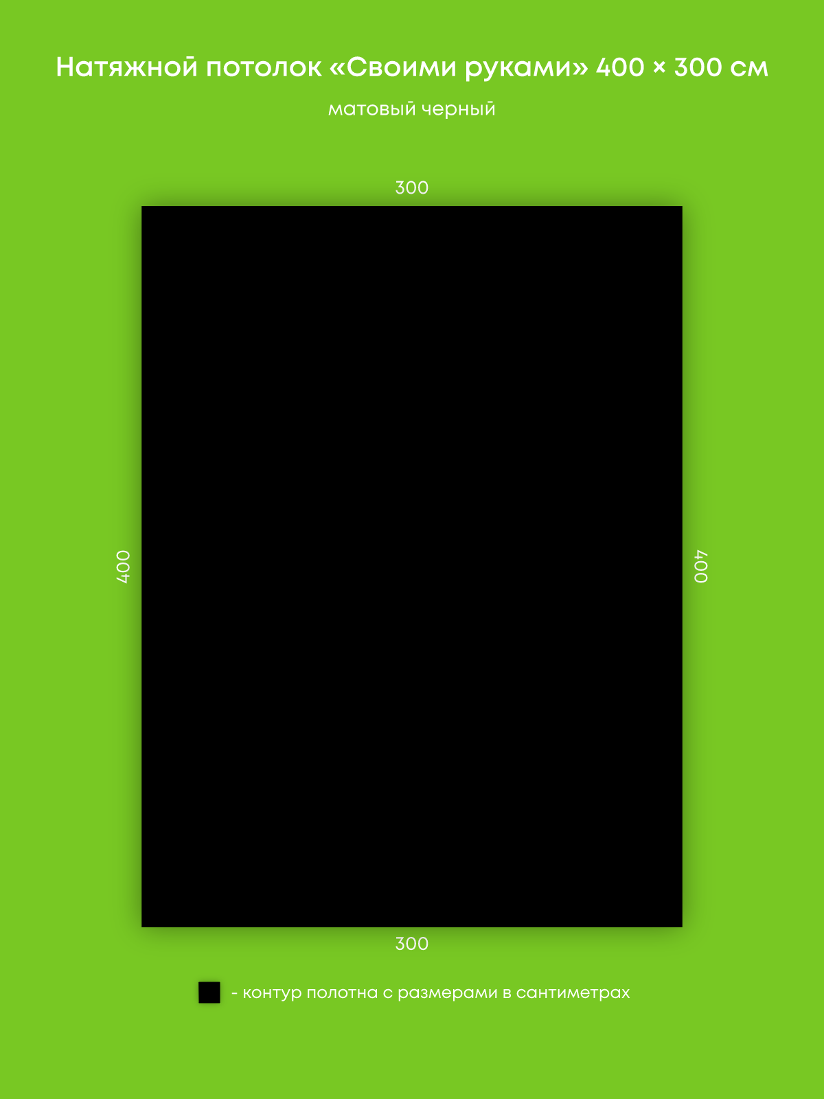 Натяжной потолок черный матовый, изготовленный по индивидуальным размерам покупателя, для помещения площадью 12 м2