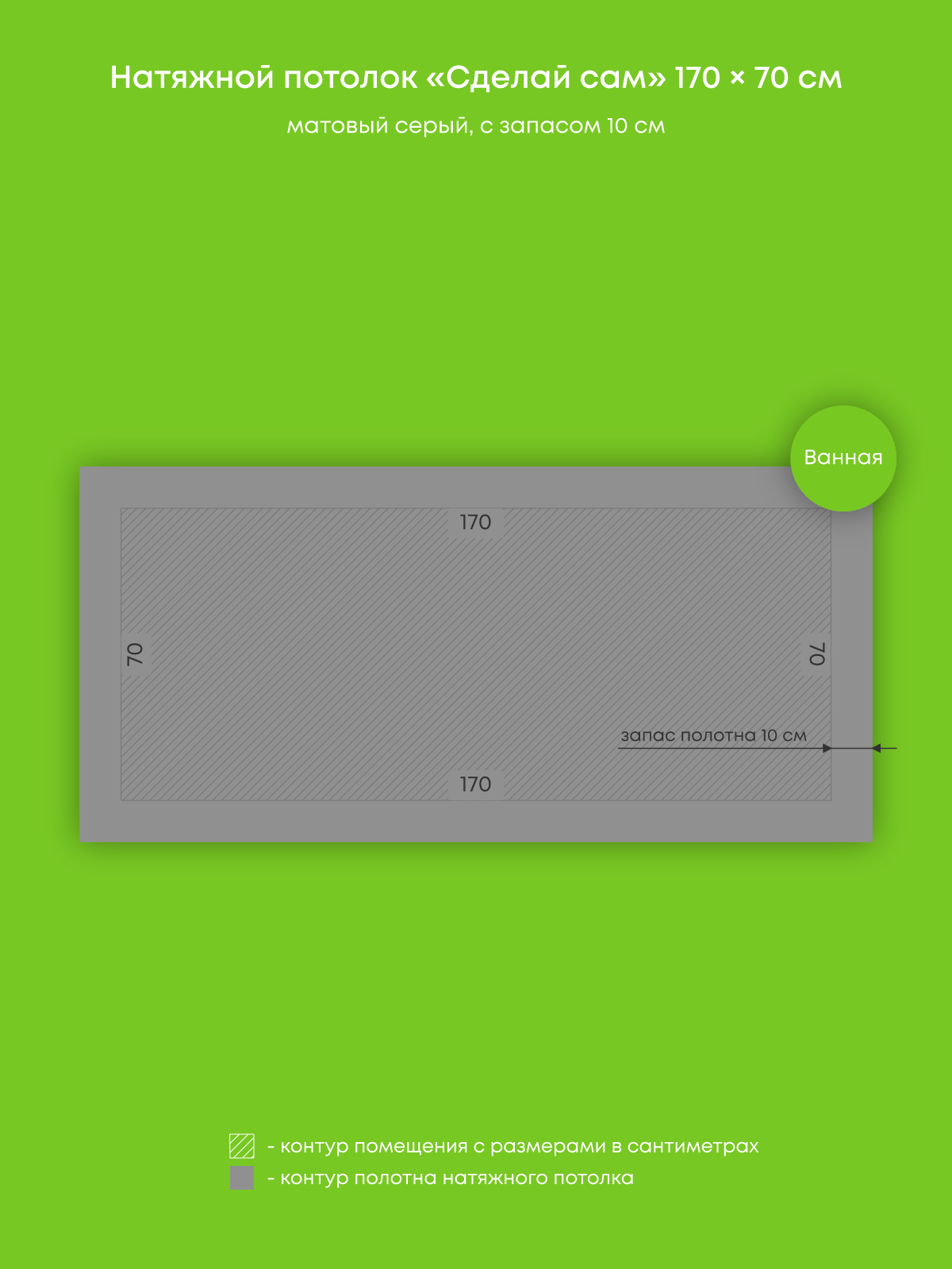 Натяжной потолок серый матовый, изготовленный по индивидуальным размерам покупателя, для ванной площадью 1.2 м2