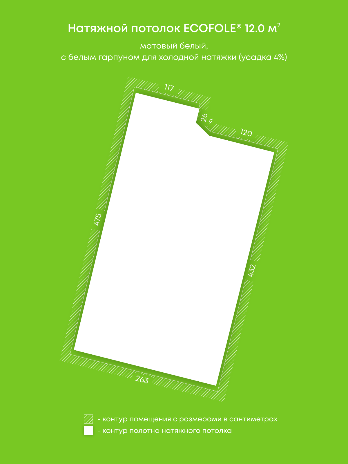 Матовый натяжной потолок 12 м2
