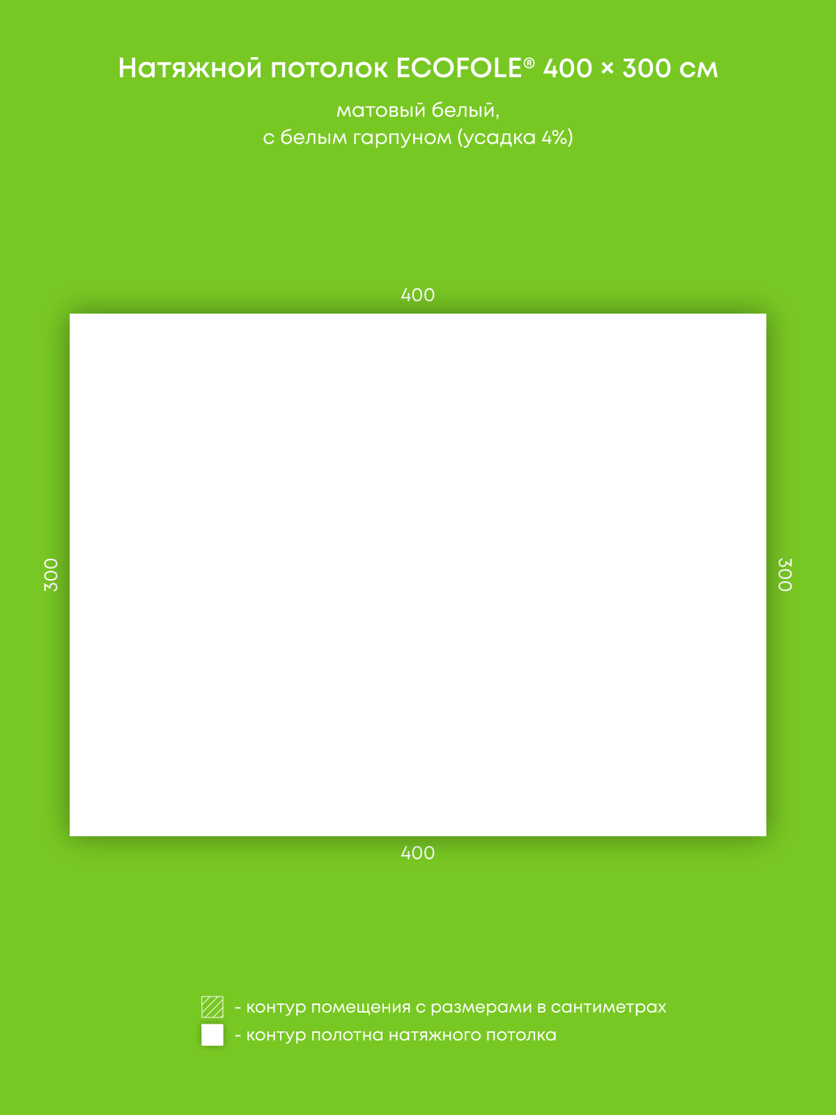 Натяжной потолок белый матовый, изготовленный по индивидуальным размерам покупателя, для помещения площадью 12 м2