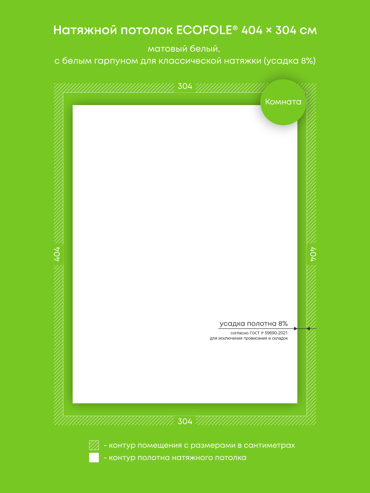 Натяжной потолок белый матовый, классической натяжки, изготовленный по индивидуальным размерам покупателя, для помещения площадью 12.3 м2