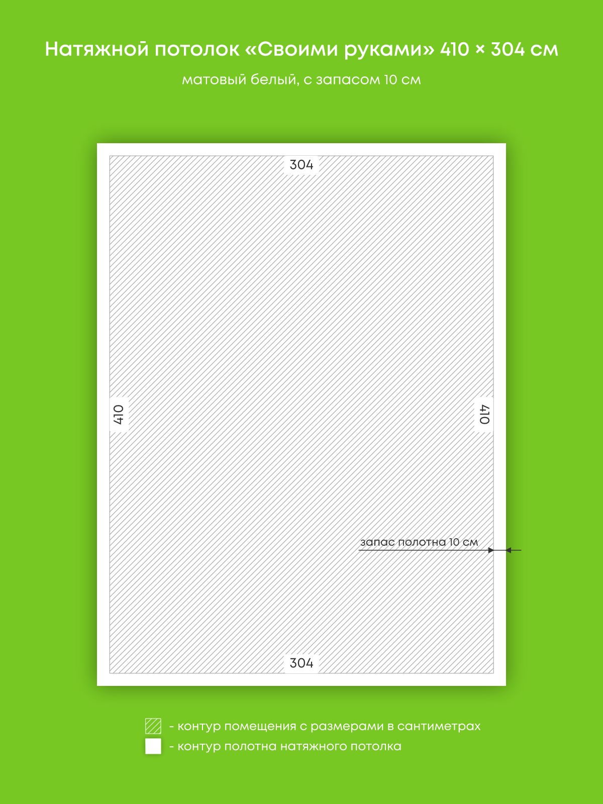 Натяжной потолок белый матовый, изготовленный по индивидуальным размерам покупателя, для кухни площадью 12.5 м2