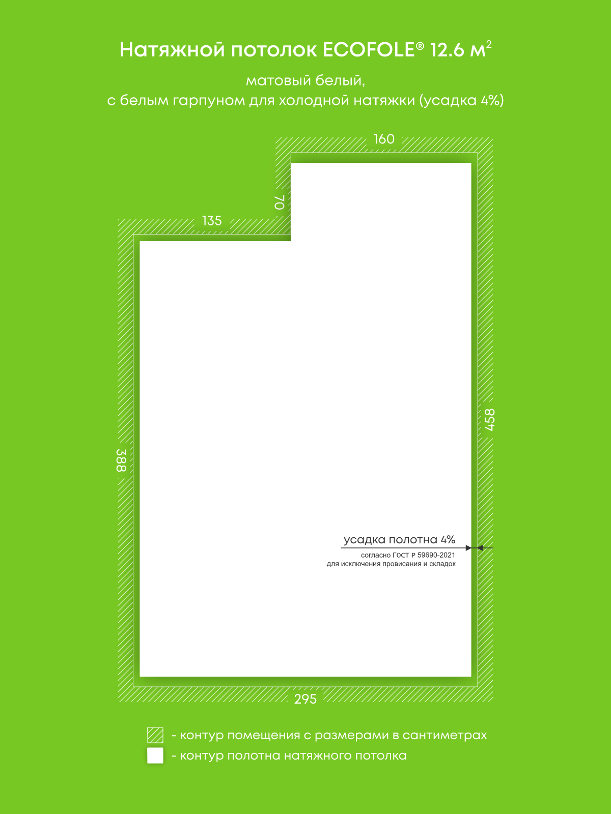Натяжной потолок белый матовый, изготовленный по индивидуальным размерам покупателя, для кухни площадью 12.6 м2