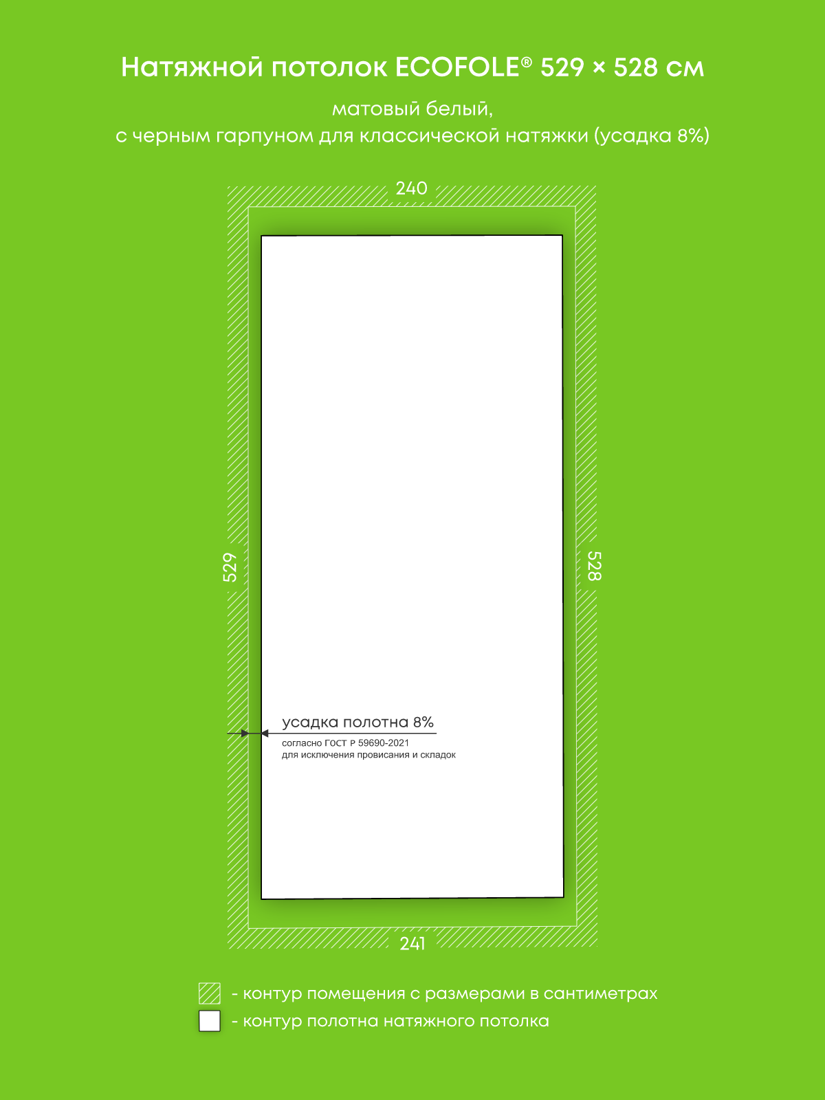 Натяжной потолок белый матовый, изготовленный по индивидуальным размерам покупателя, для помещения площадью 12.7 м2