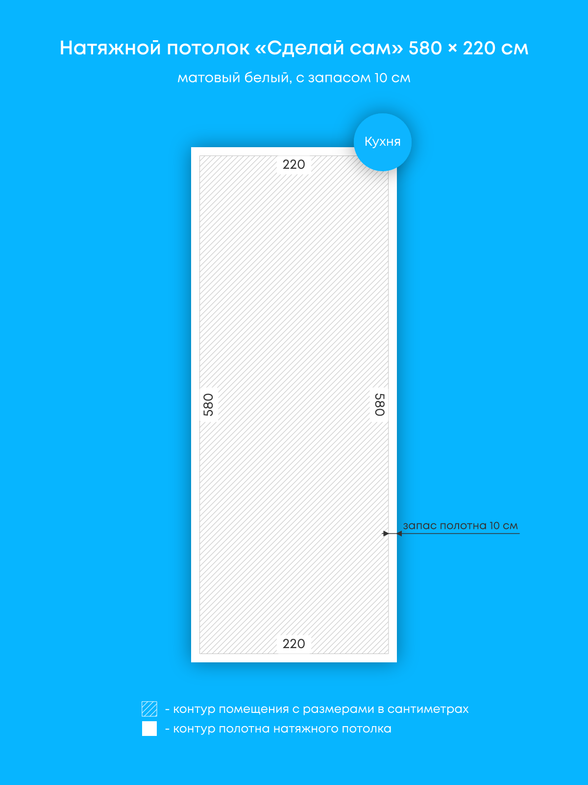 Натяжной потолок белый матовый, сделай сам, изготовленный по индивидуальным размерам покупателя, для помещения площадью 12.8 м2