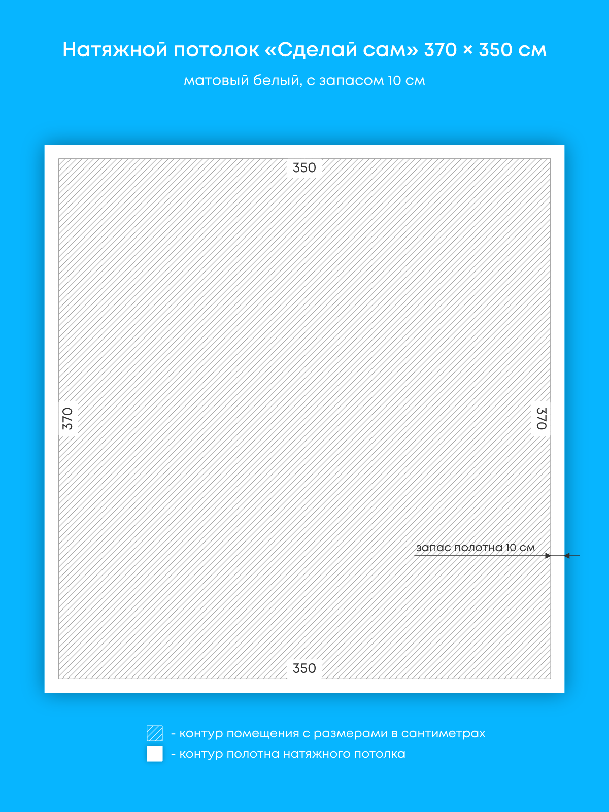 Натяжной потолок белый матовый, изготовленный по индивидуальным размерам покупателя, для комнаты площадью 13 м2