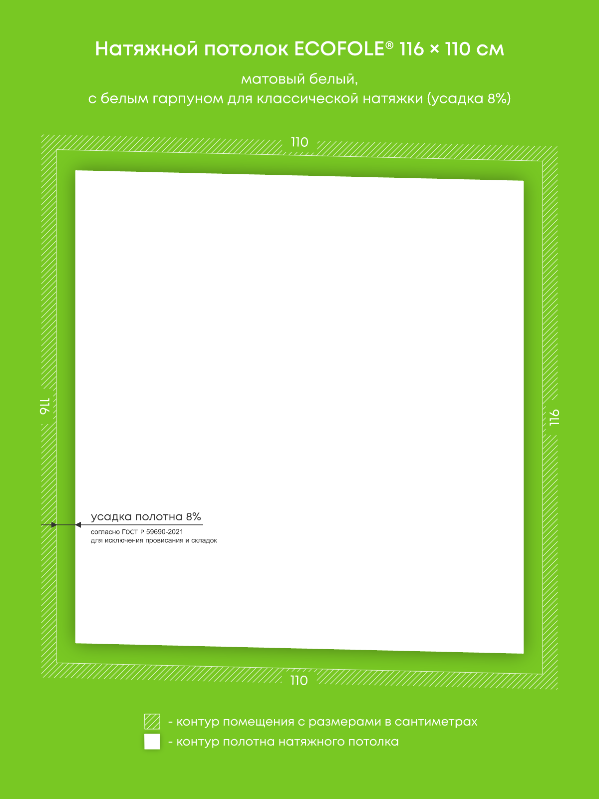 Натяжной потолок белый матовый, изготовленный по индивидуальным размерам покупателя, для помещения площадью 1.3 м2