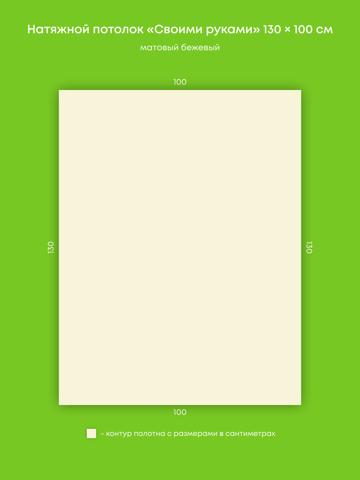 Натяжной потолок бежевый матовый, изготовленный по индивидуальным размерам покупателя, для помещения площадью 1.3 м2
