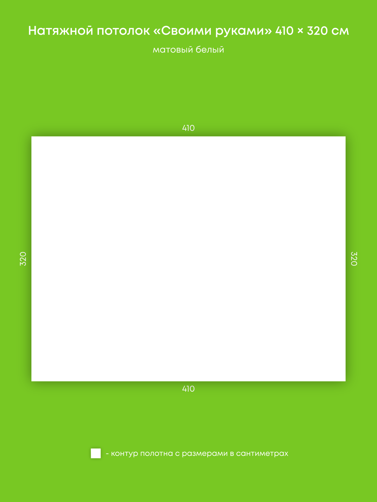 Натяжной потолок белый матовый, изготовленный по индивидуальным размерам покупателя, для помещения площадью 13.1 м2