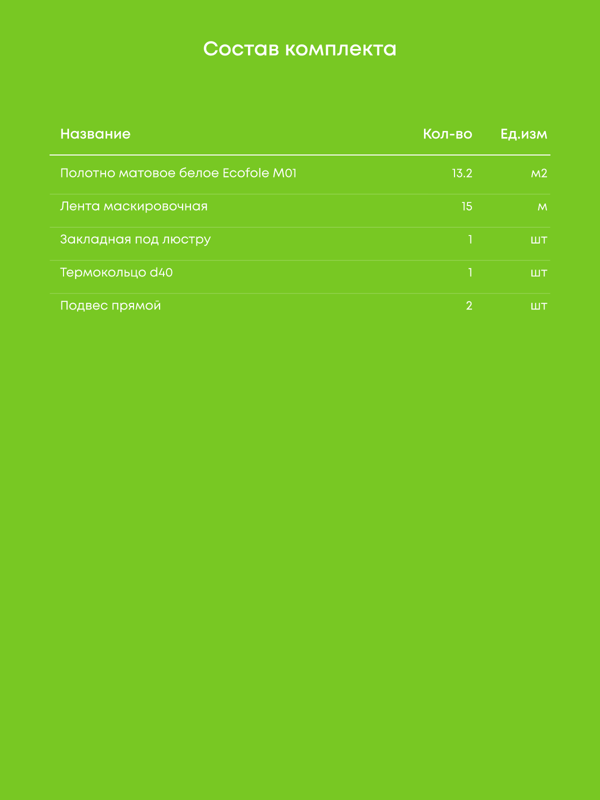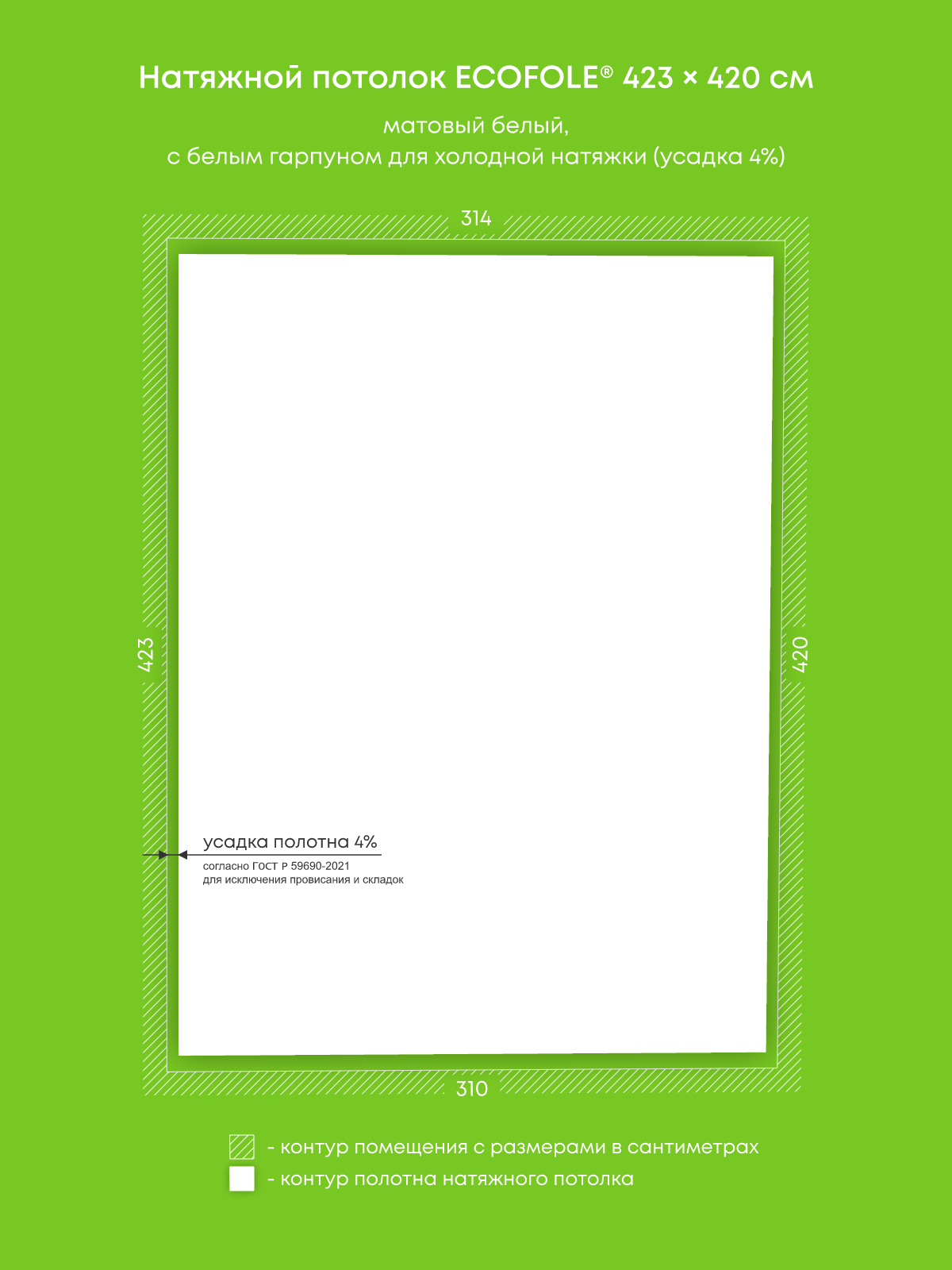 Натяжной потолок белый матовый, изготовленный по индивидуальным размерам покупателя, для помещения площадью 13.2 м2