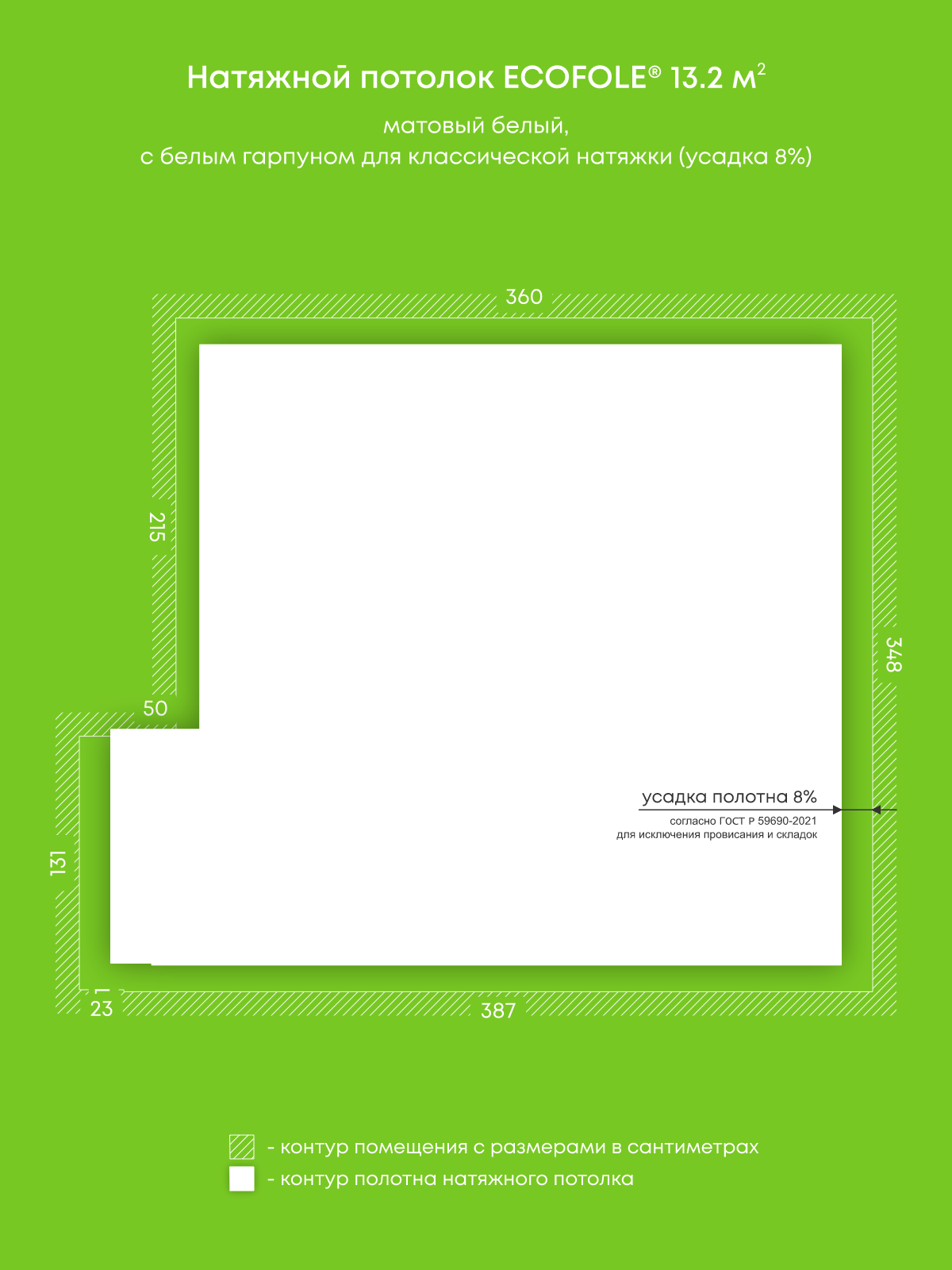 Матовый натяжной потолок 13.2 м2