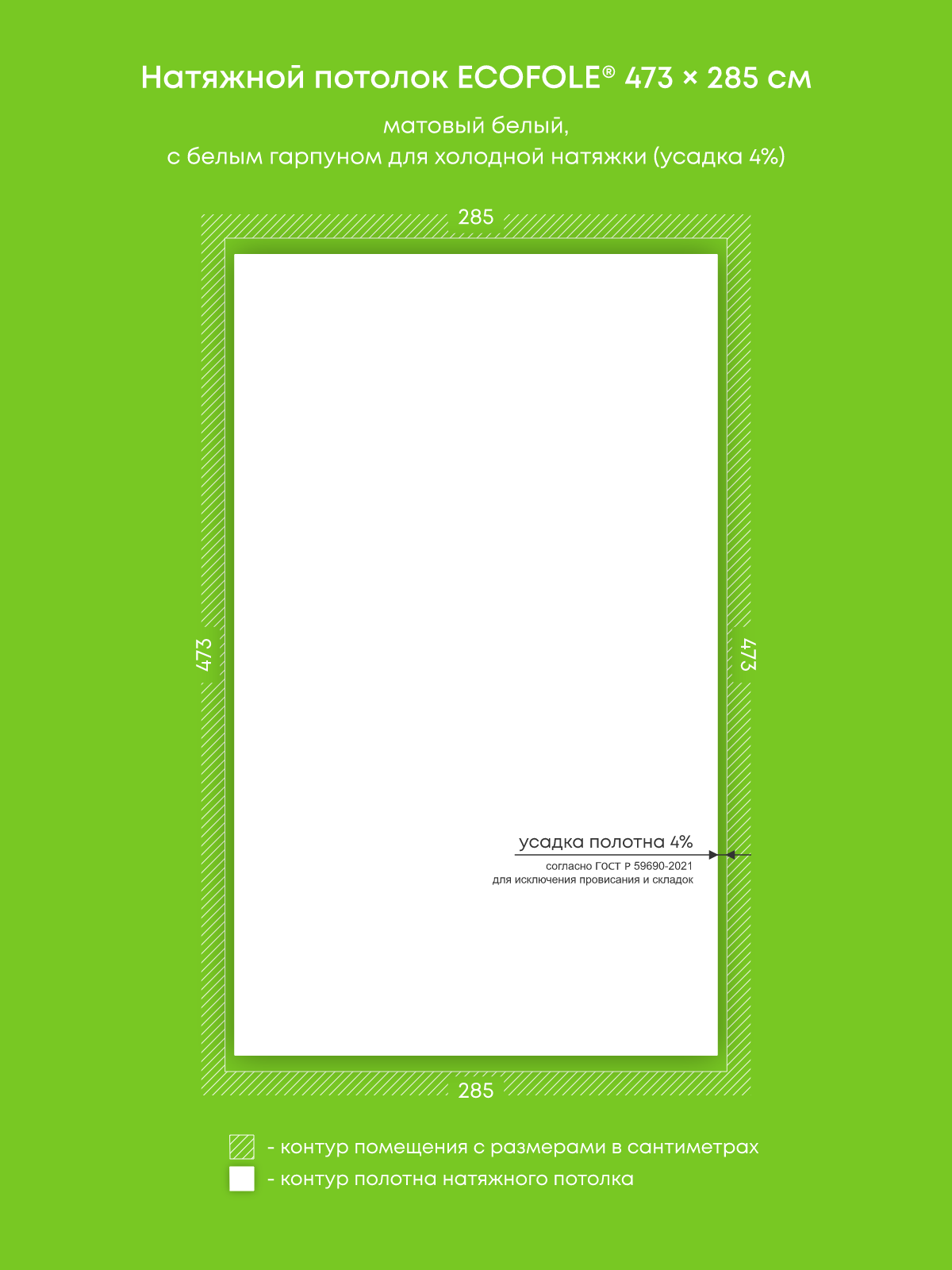 Натяжной потолок белый матовый, изготовленный по индивидуальным размерам покупателя, для комнаты площадью 13.5 м2