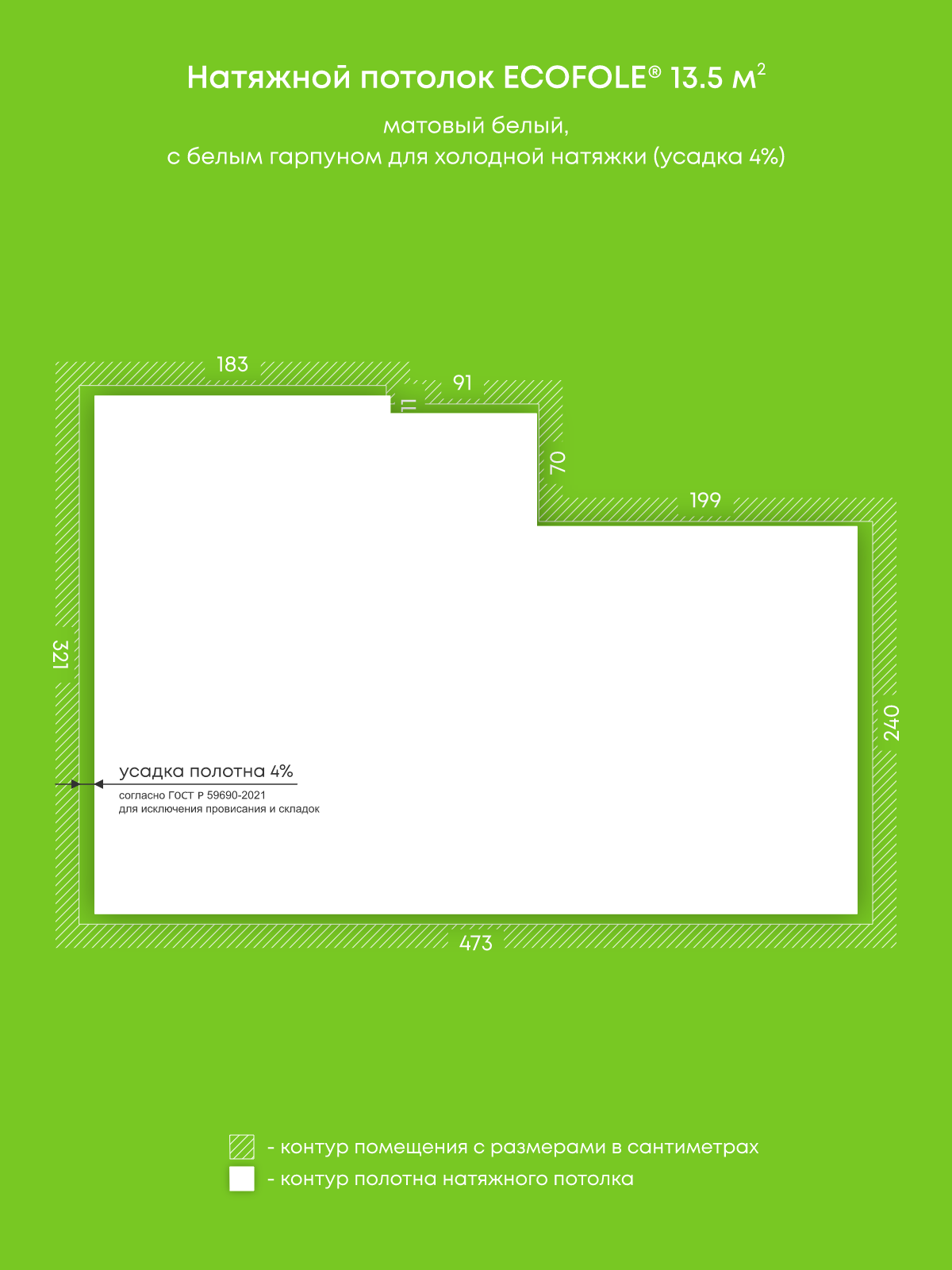 Матовый натяжной потолок 13.5 м2