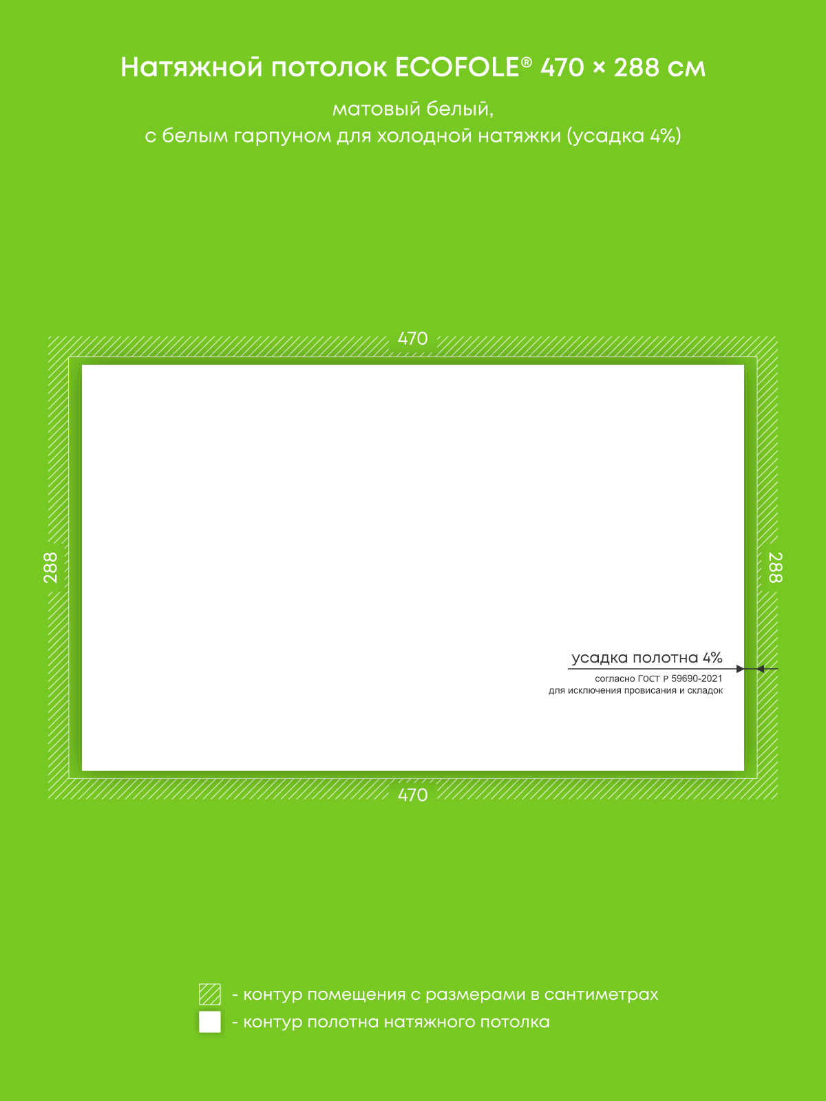 Натяжной потолок белый матовый, изготовленный по индивидуальным размерам покупателя, для комнаты площадью 13.5 м2