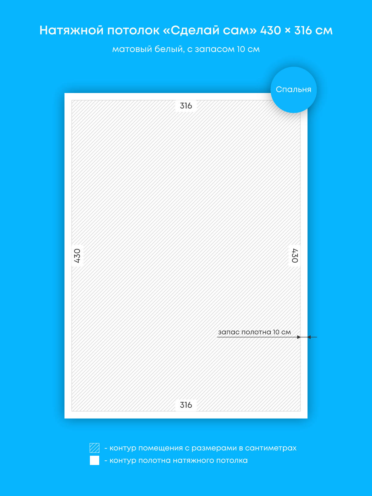 Натяжной потолок белый матовый, сделай сам, изготовленный по индивидуальным размерам покупателя, для помещения площадью 13.6 м2