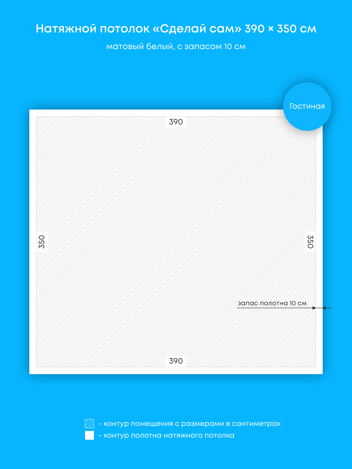 Натяжной потолок белый матовый, сделай сам, изготовленный по индивидуальным размерам покупателя, для помещения площадью 13.7 м2