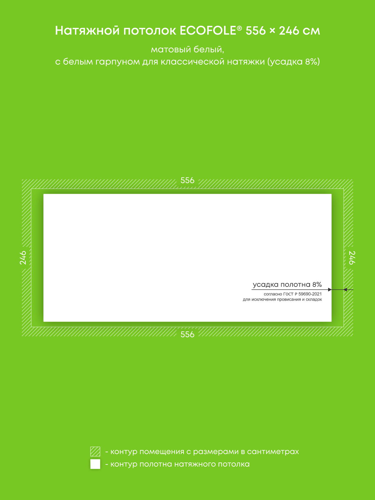 Натяжной потолок белый матовый, изготовленный по индивидуальным размерам покупателя, для комнаты площадью 13.7 м2