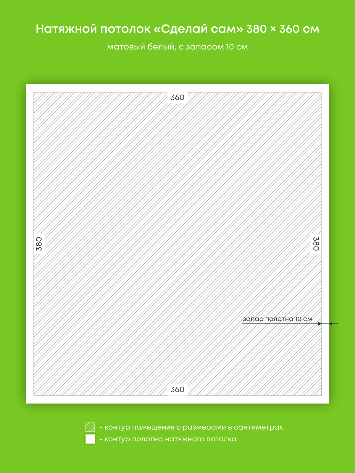 Натяжной потолок белый матовый, изготовленный по индивидуальным размерам покупателя, для гостиной площадью 13.7 м2